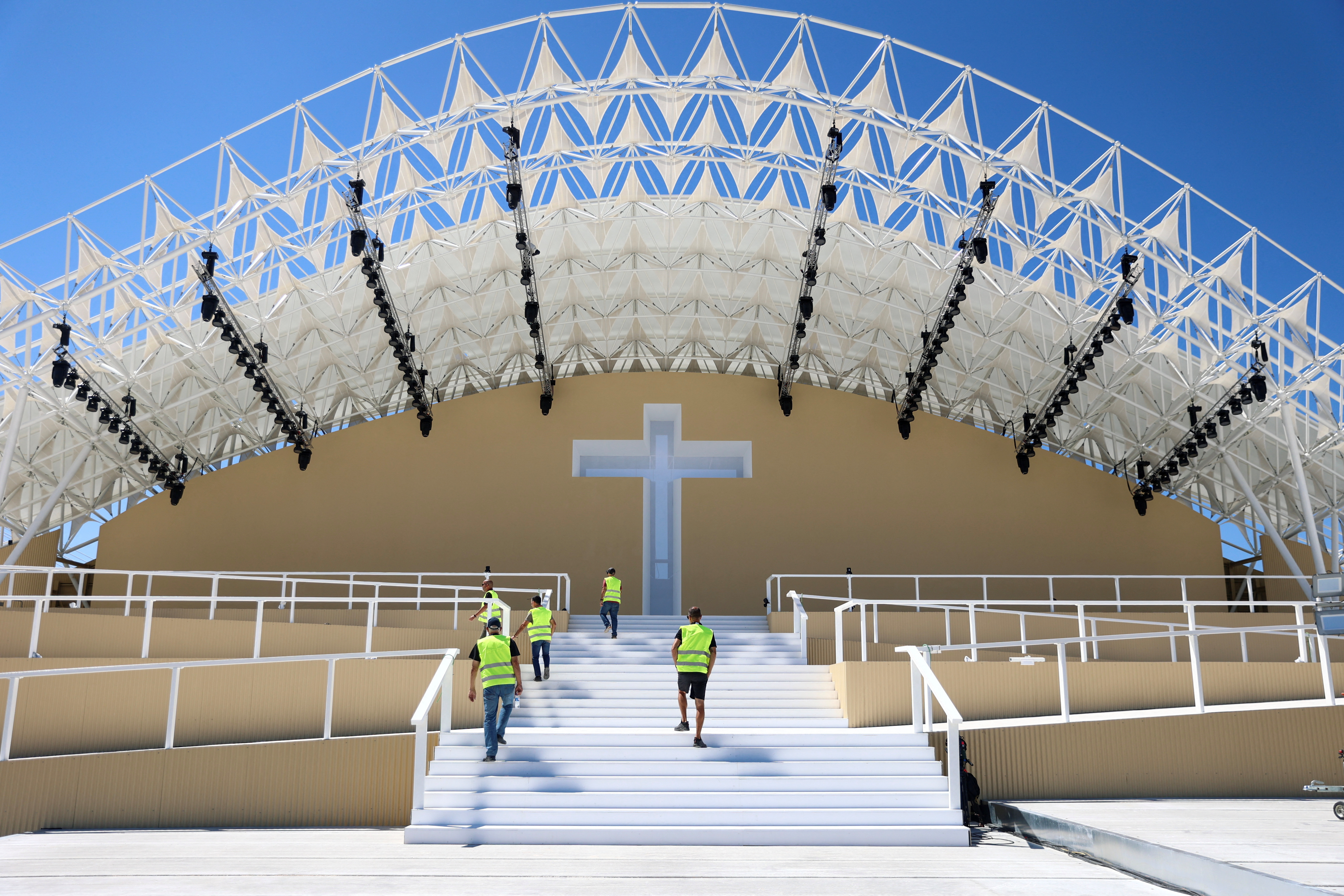 在不同地點設置了兩個舞台,年輕人將在此舉行彌撒、守夜和其他社交和宗教活動。