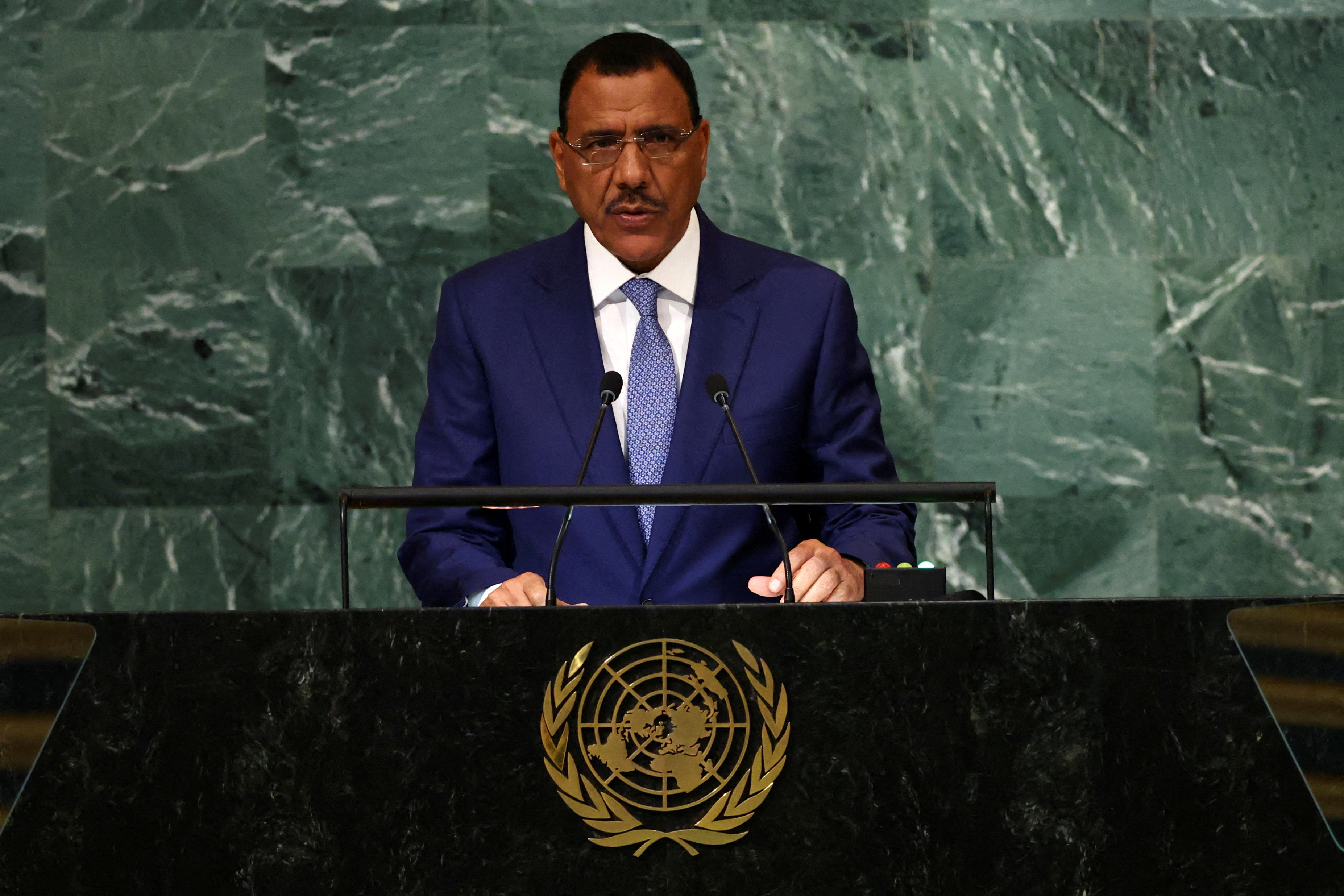 尼日爾總統穆罕默德·巴祖姆在美國紐約聯合國總部舉行的第77屆聯合國大會上發表講話,2022年9月22日。路透社/邁克·塞加爾/檔案照
