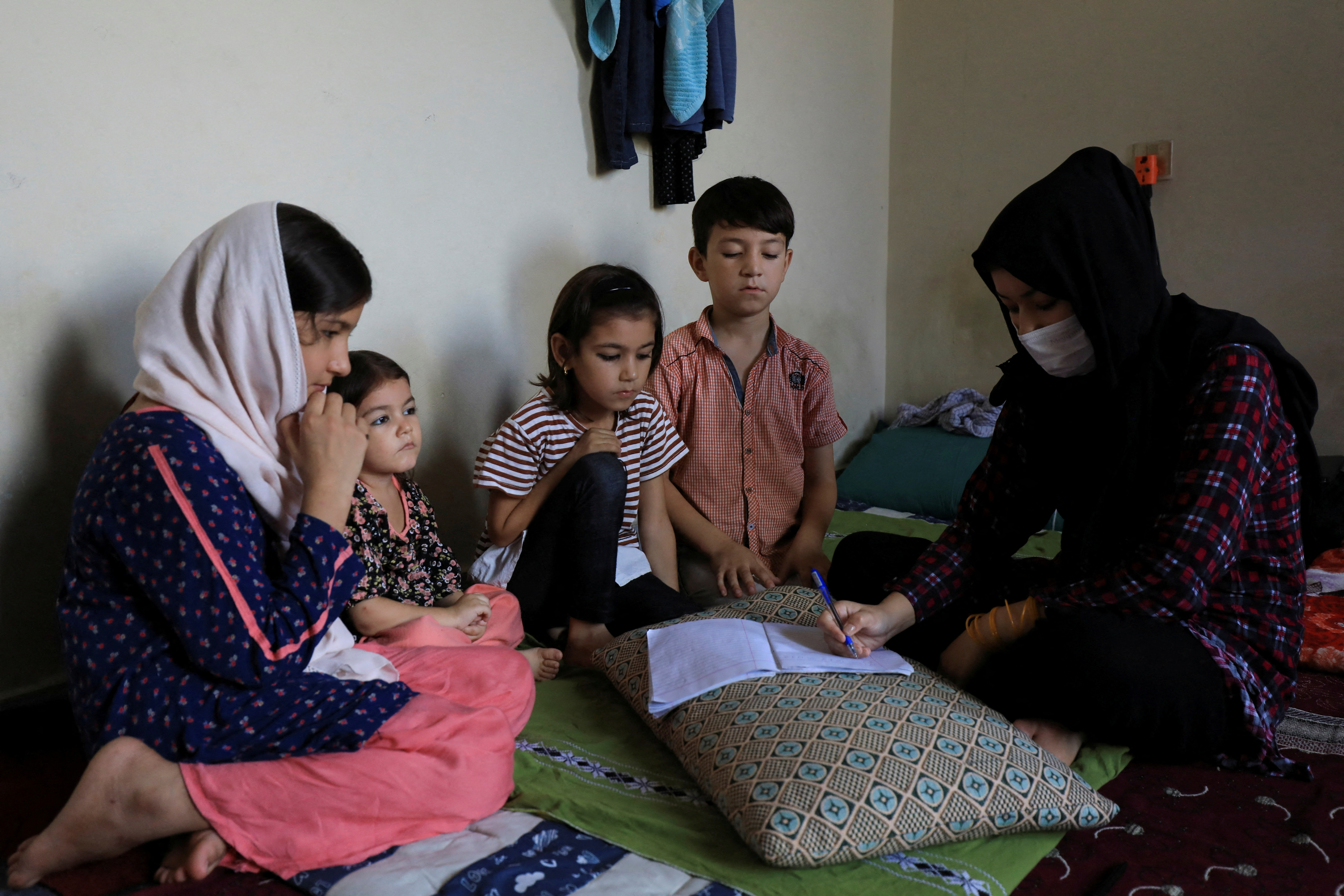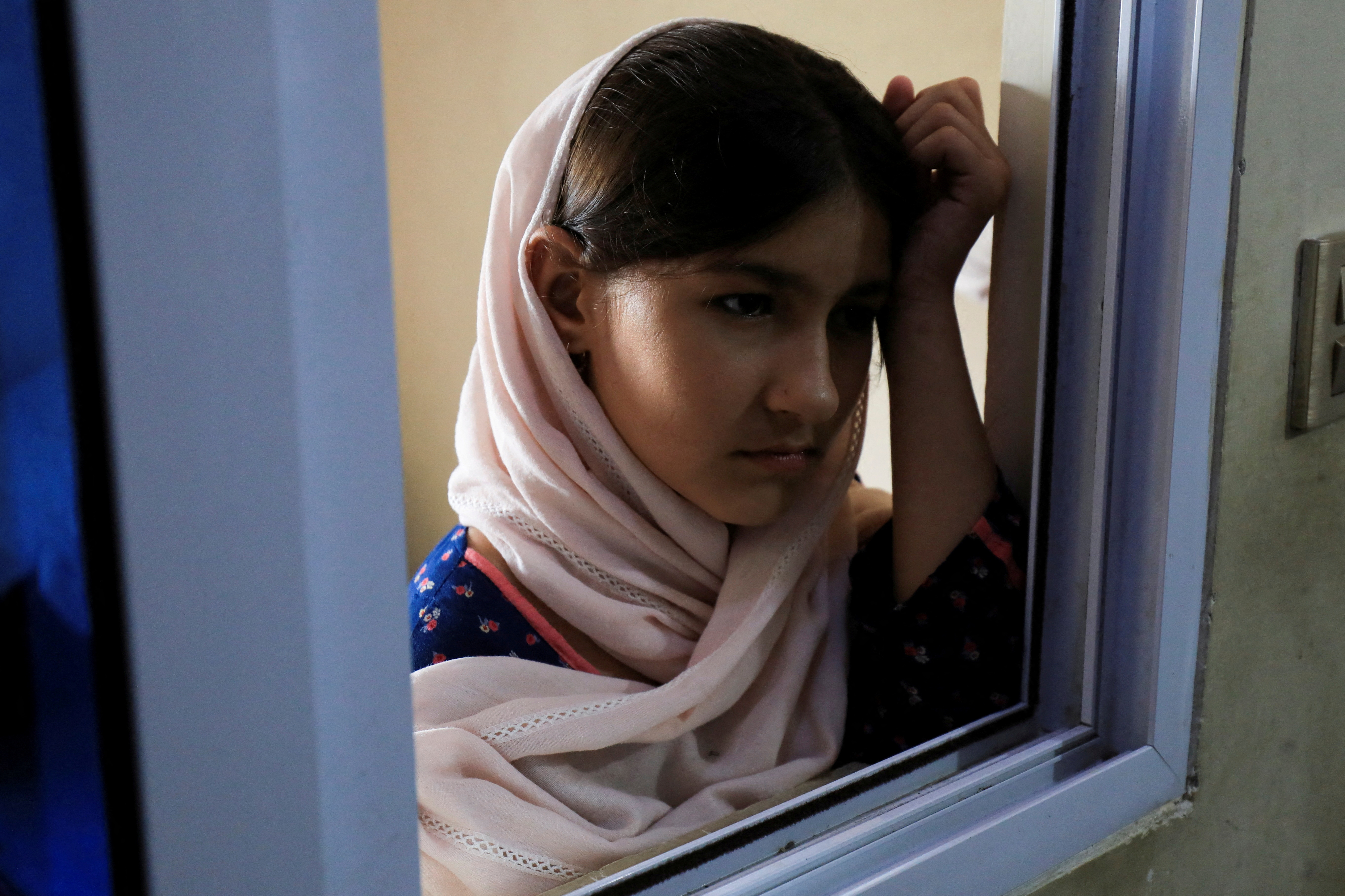 2023年8月7日,馬爾瓦(18歲)和拉比婭(45歲)在巴基斯坦拉瓦爾品第的一間租來的房子裏與孩子們在一起,等待他們由西方政府創建的特殊簽證來保護阿富汗人。路透社/Fayaz Aziz