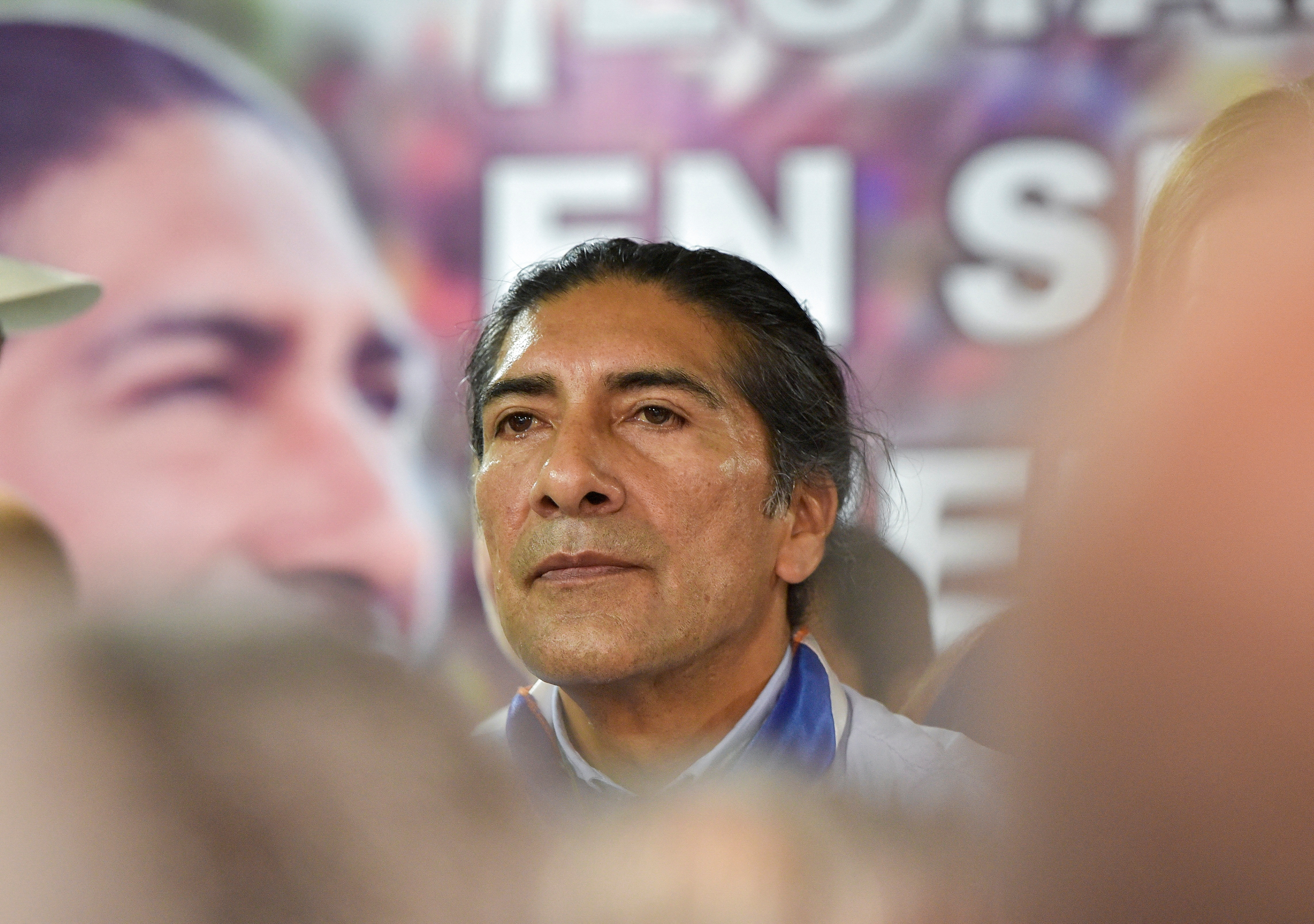 環保主義原住民候選人亞庫·佩雷斯在基多的一次早間集會上承諾要建立一個人民政府。