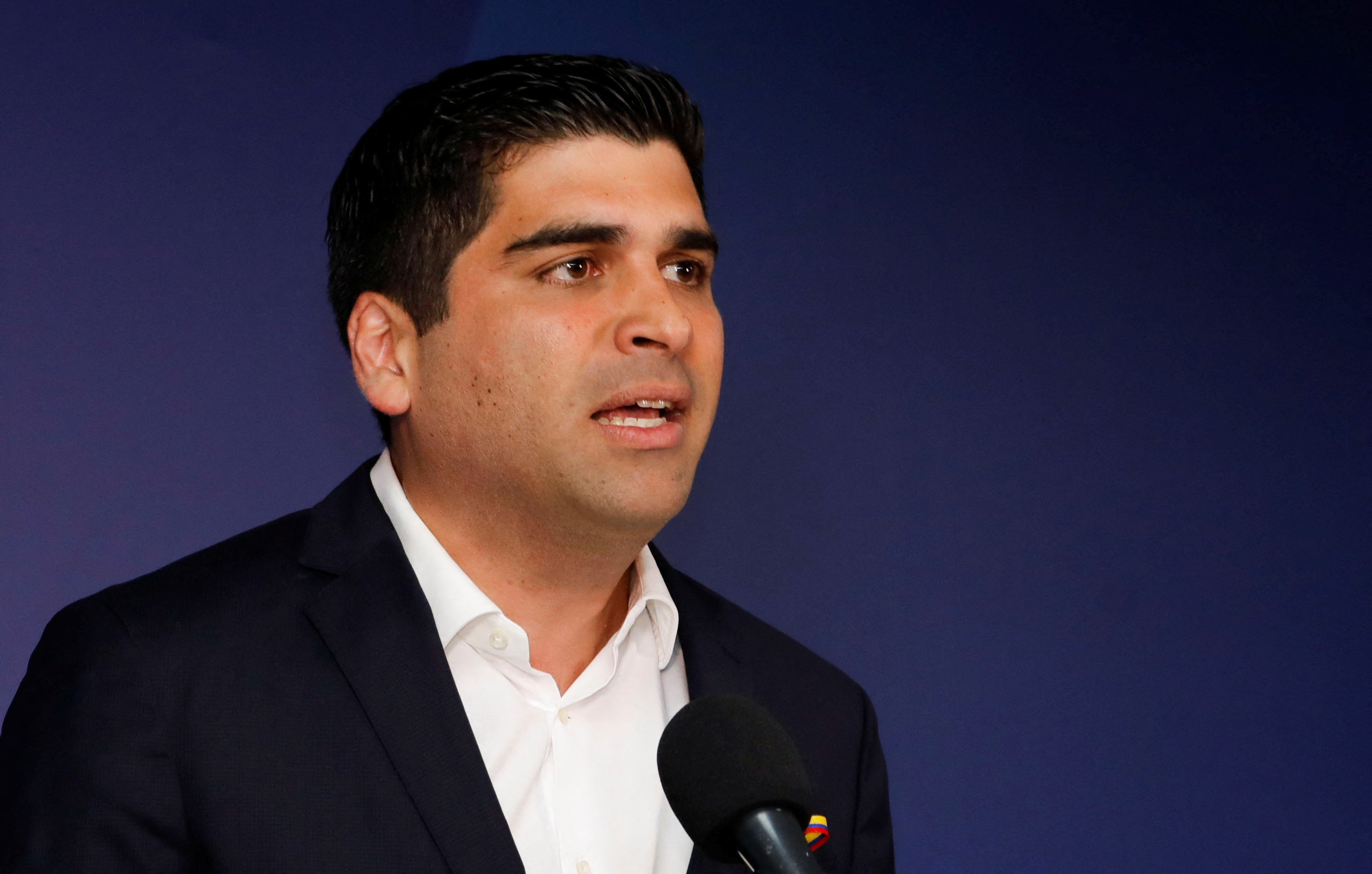 厄瓜多爾總統候選人奧托·索嫩霍爾策納(Otto Sonnenholzner)代表行動聯盟在基多參加總統辯論並發表講話,2023年8月13日,厄瓜多爾。路透社/卡倫·託羅(Karen Toro)攝