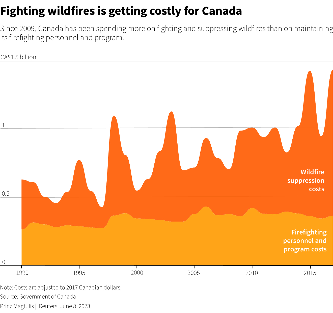 自2009年以來,加拿大在打擊和撲滅野火方面的支出已超過了維護消防人員和項目的支出。