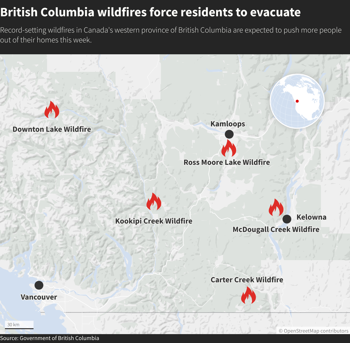 加拿大將部署軍隊在不列顛哥倫比亞省應對迅速蔓延的火災| 路透社