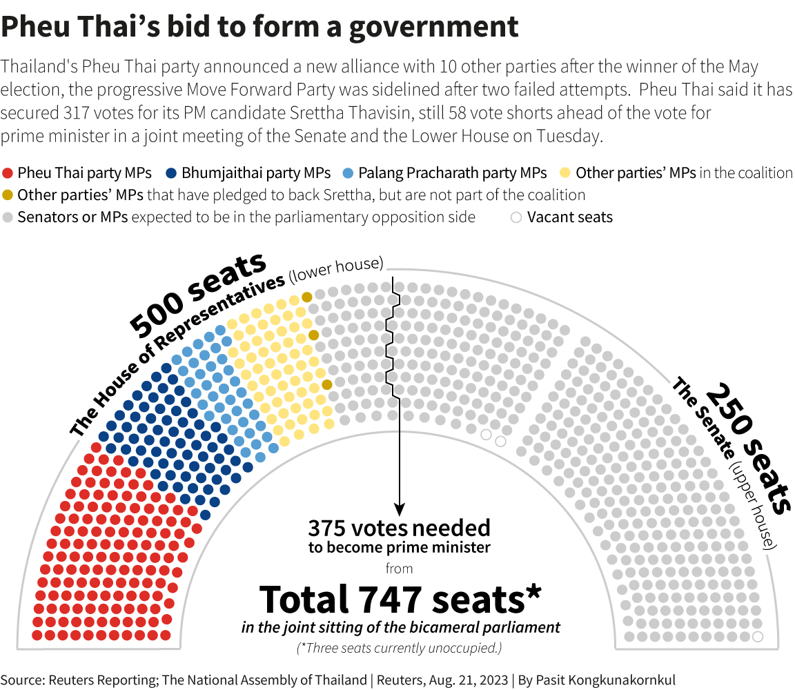 泰國的Pheu Thai加入軍方對手,試圖組建11黨政府 | 路透社