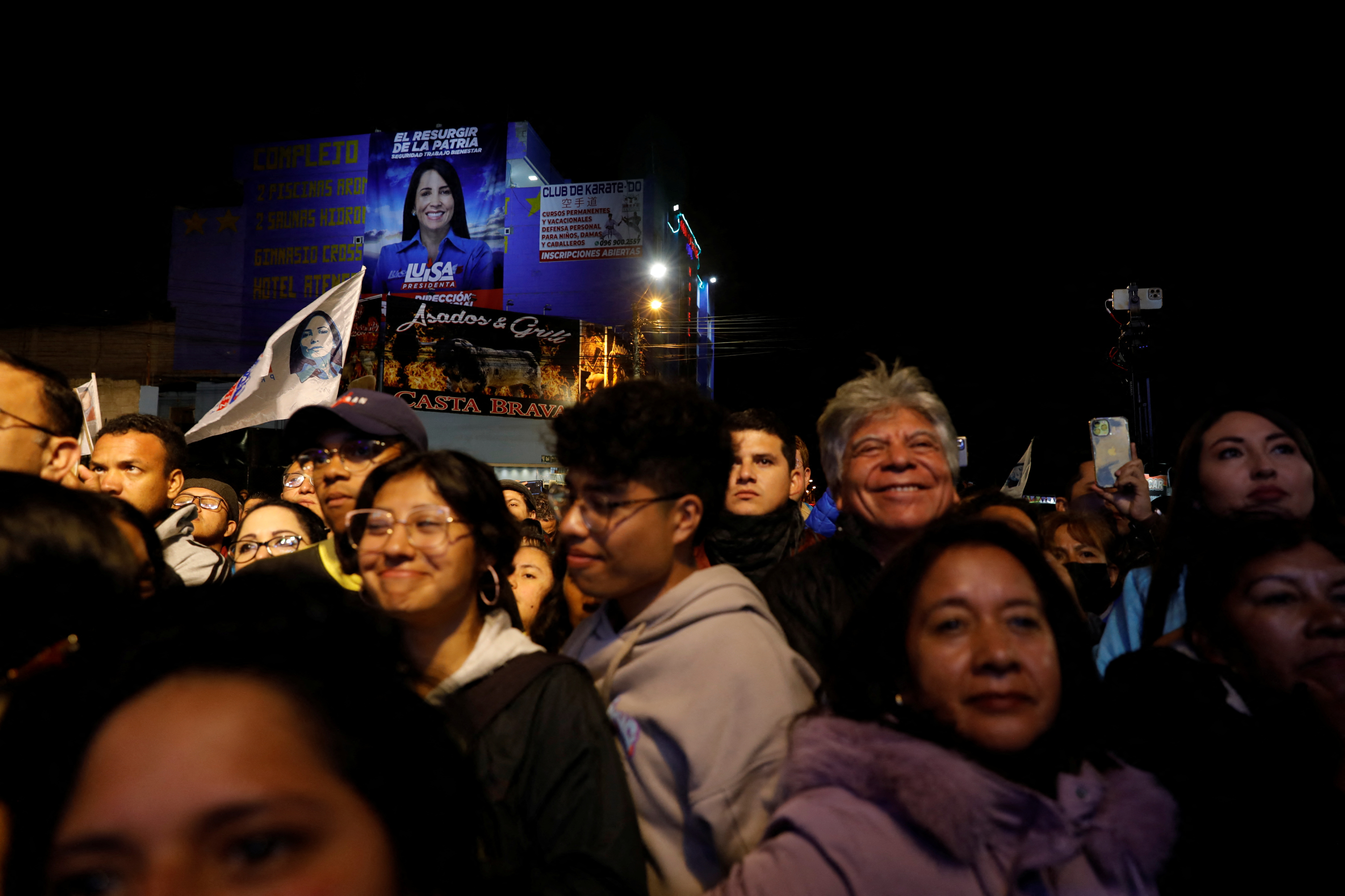 厄瓜多爾總統候選人路易莎·岡薩雷斯的支持者在2023年8月20日厄瓜多爾基多總統選舉之夜活動中聚集。路透社/卡倫·託羅攝