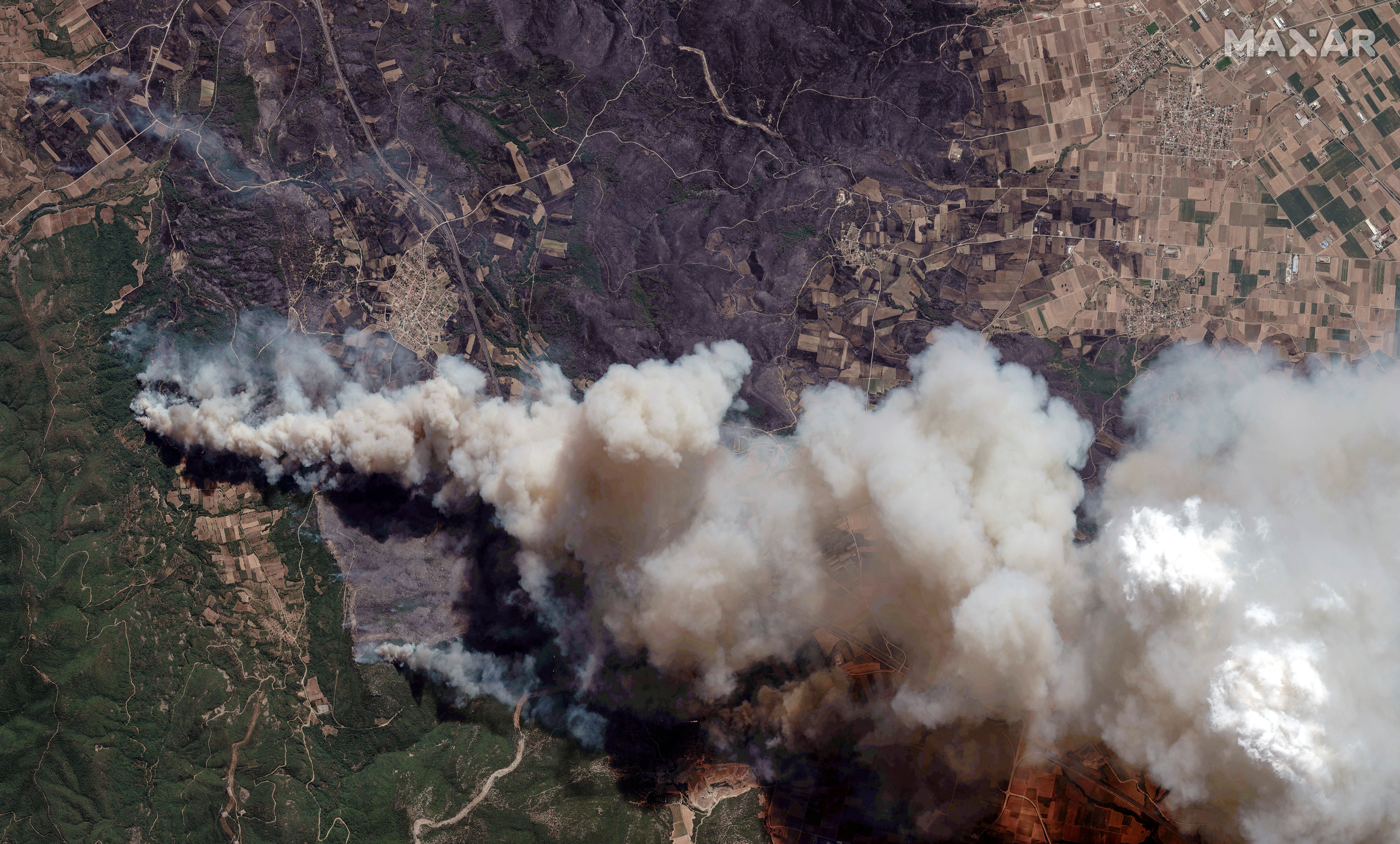 國家電視台播放的衞星圖像顯示,埃夫羅斯地區的火災煙霧已經漂移到了西北部的愛奧尼亞羣島,離意大利不遠。