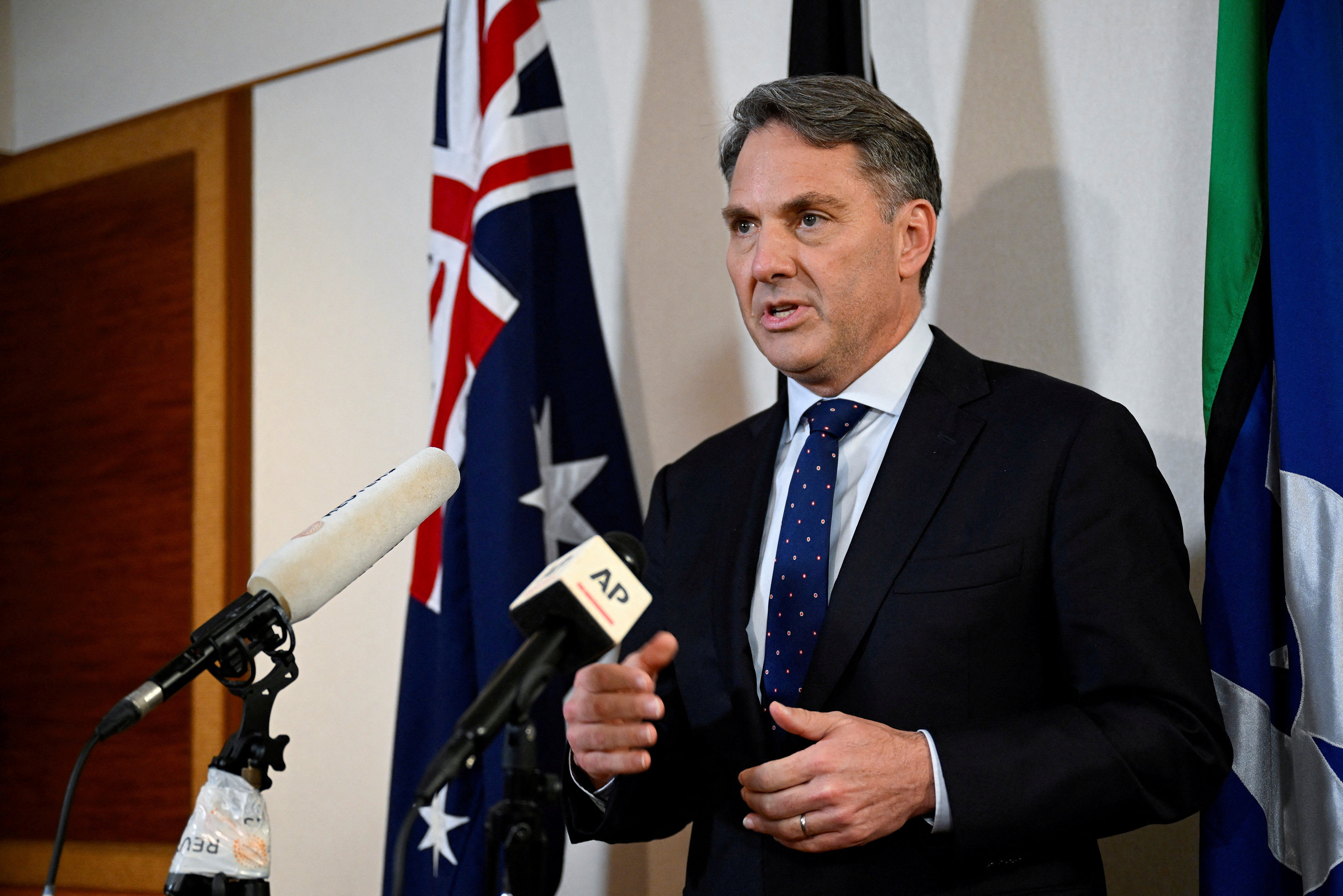 澳大利亞國防部長理查德·馬爾斯(Richard Marles)在2022年6月12日新加坡第19屆香格里拉對話會上向媒體發表講話。路透社/卡羅琳·奇亞/文件照片