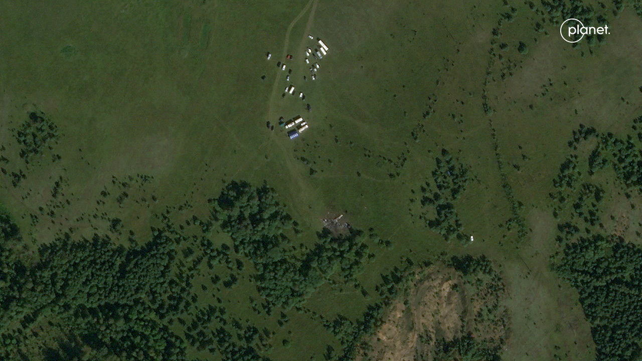 一張衞星圖像顯示了與瓦格納僱傭兵頭目葉夫根尼·普里戈津有關的私人飛機墜毀地點,該飛機在俄羅斯特維爾地區庫任基諾附近墜毀,日期為2023年8月24日,圖片由PLANET LABS PBC/路透社提供