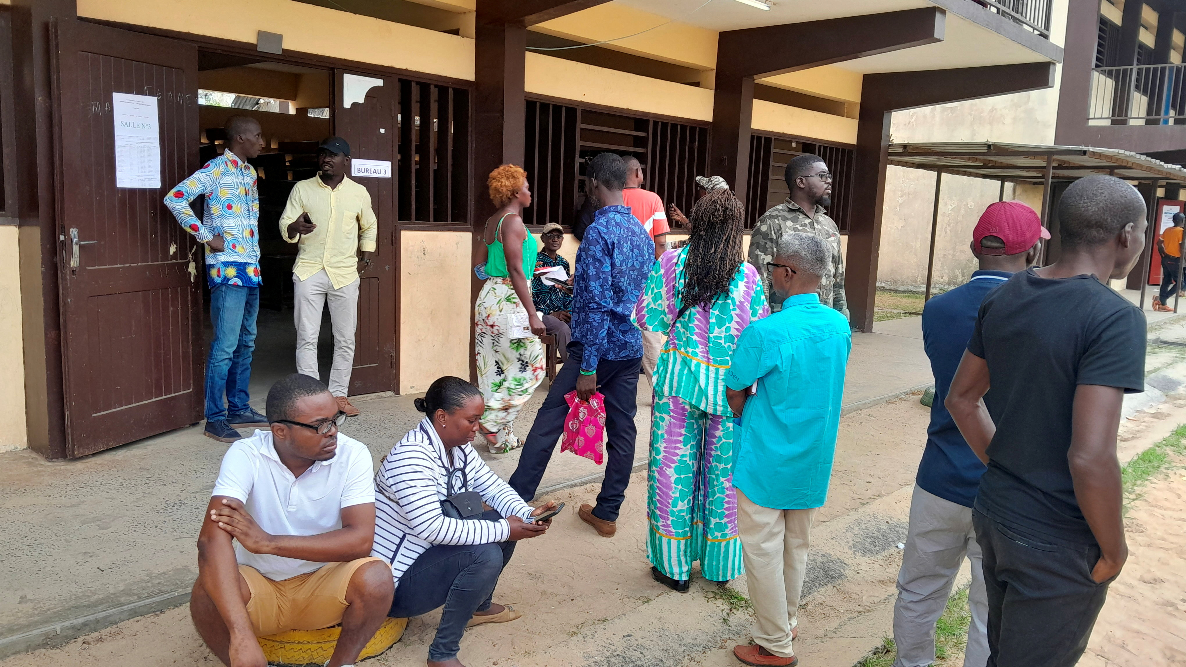 人們在加蓬利伯維爾總統選舉期間等待投票站開放,2023年8月26日,路透社/傑羅德·威爾弗裏德·奧邦戈姆攝