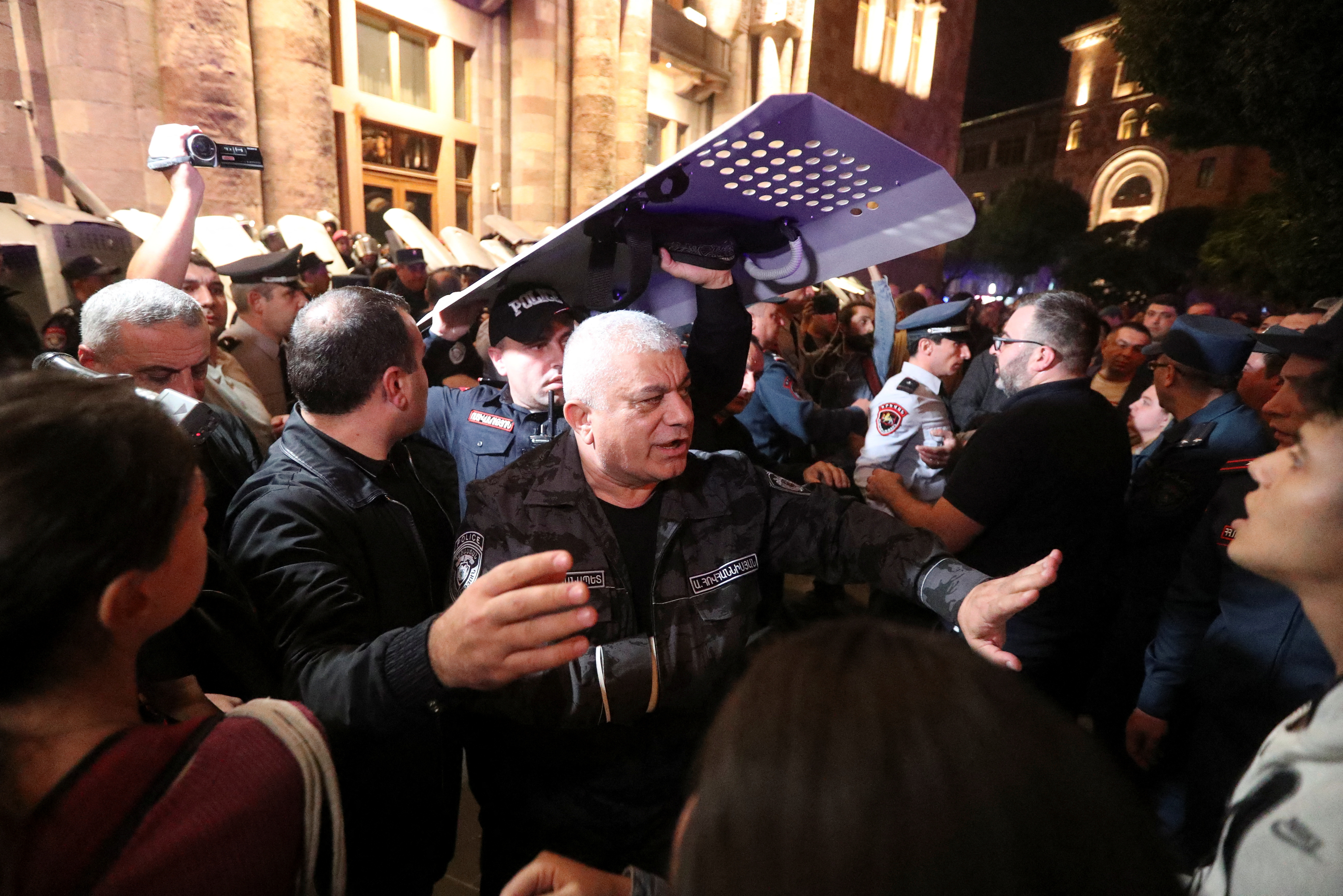 許多參與者揮舞納戈爾諾-卡拉巴赫的旗幟,一些人與警察發生了衝突。其他人向總理辦公室扔瓶子和石頭。