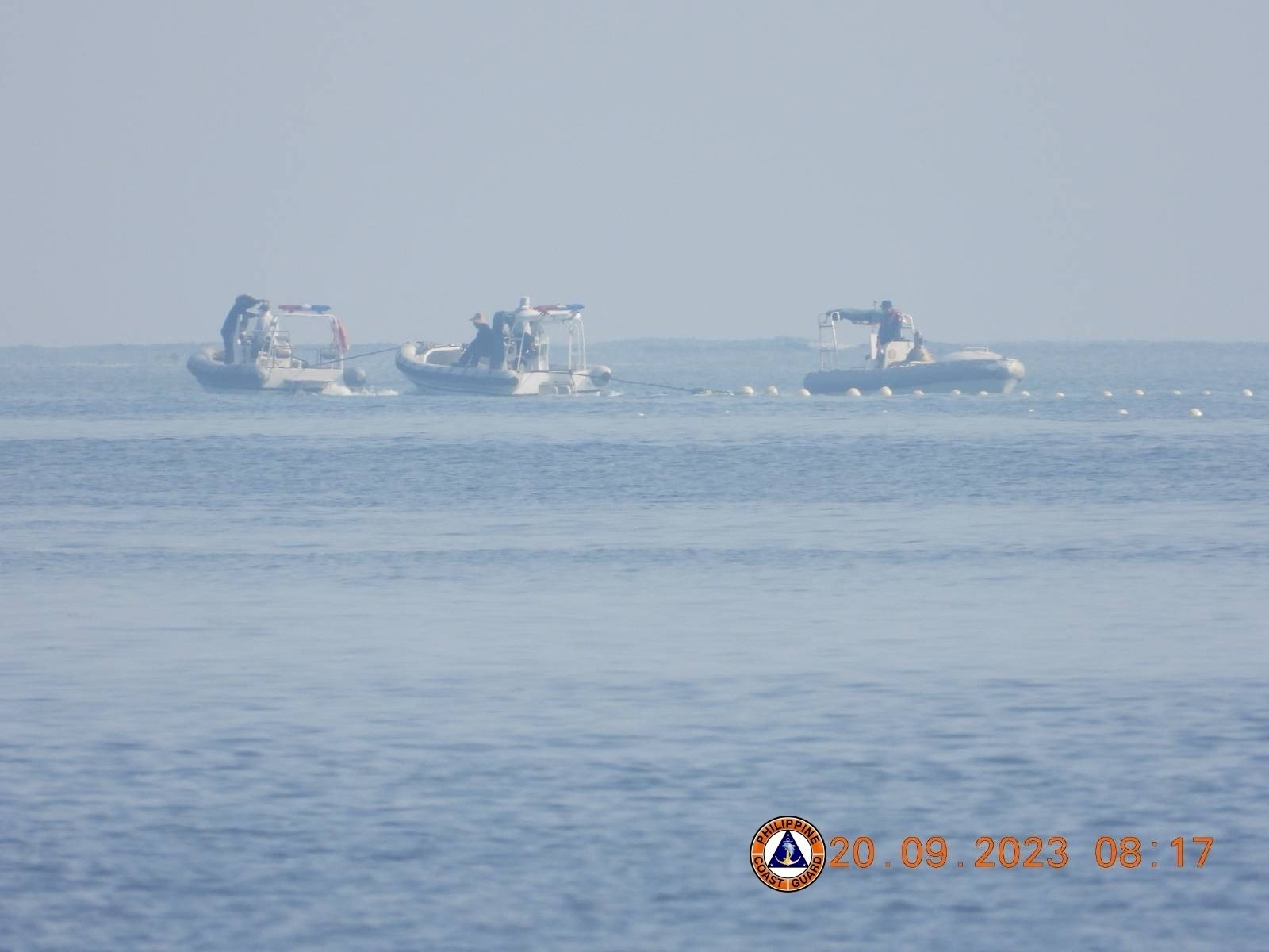 他説,當菲律賓船隻抵達時,三艘中國海岸警衞隊剛性充氣艇和一艘中國海上民兵服務船安裝了這個屏障。