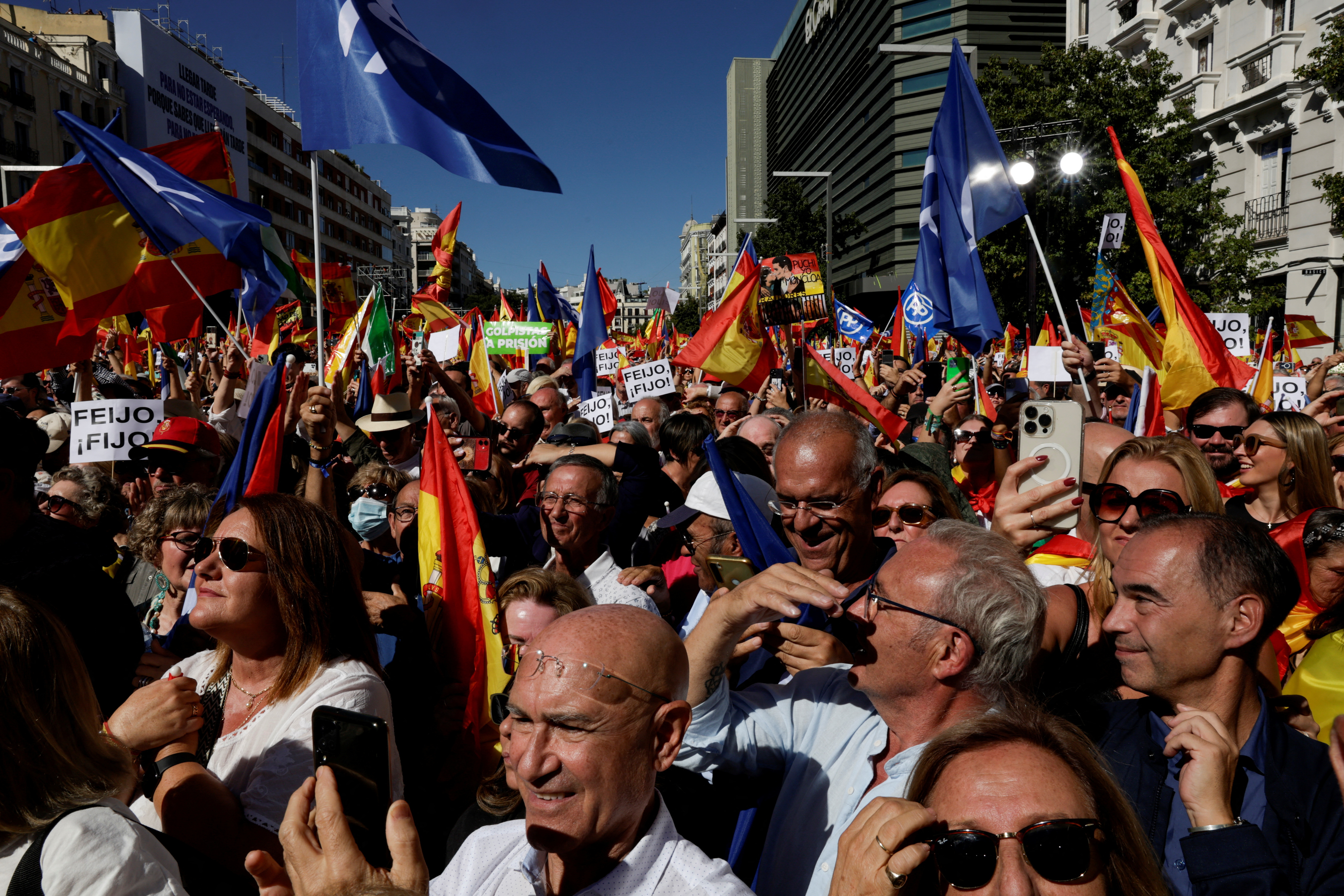 揮舞西班牙國旗,反對派保守人民黨(PP)的支持者從西班牙各地前往馬德里參加集會。當局估計人羣規模為40,000人。
