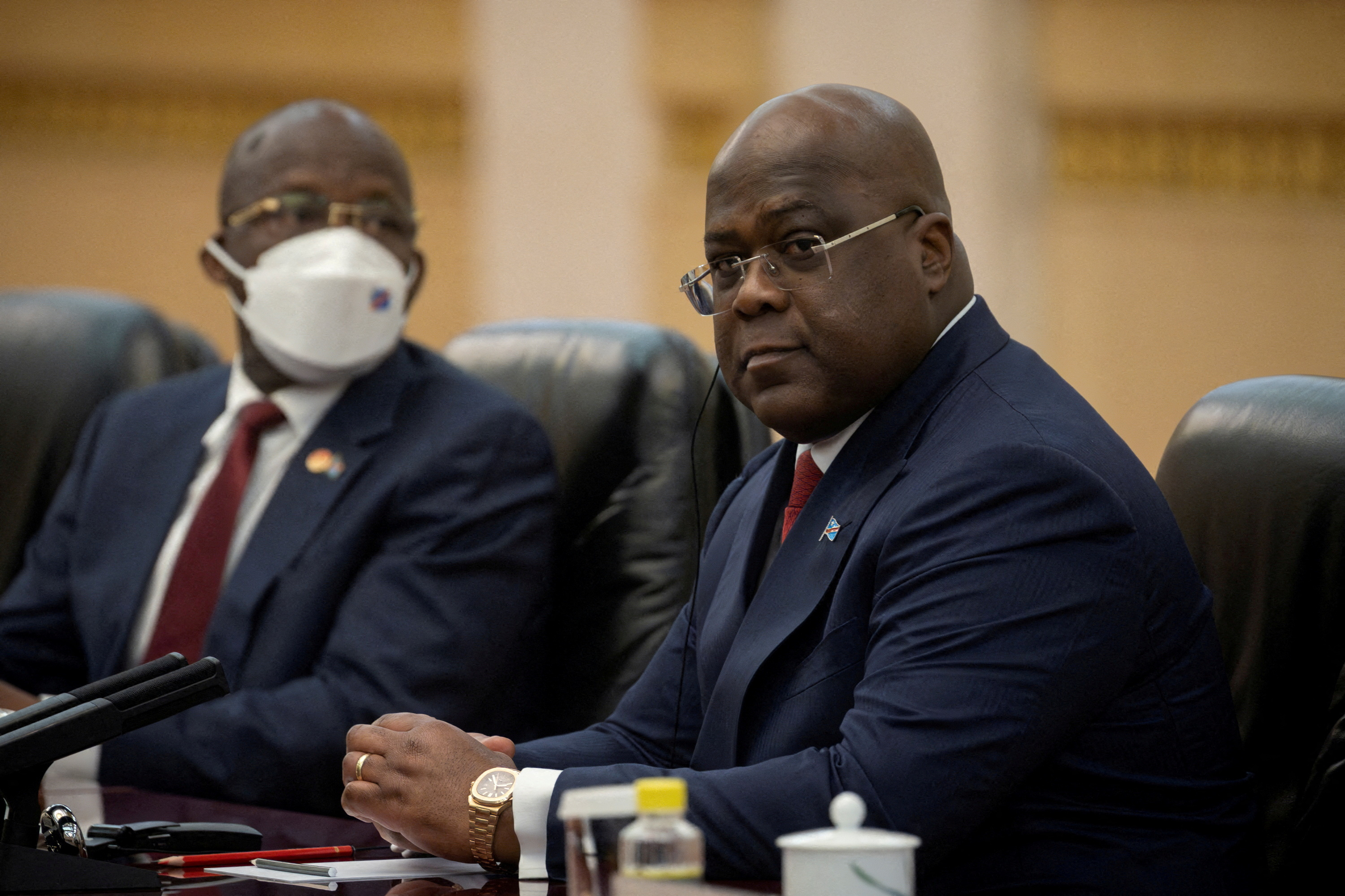 剛果民主共和國總統費利克斯·齊塞凱迪(Felix Tshisekedi)出席2023年5月26日在中國北京人民大會堂與中國總理李強舉行的會談。路透社/托馬斯·彼得/攝影記者/池/文件照片