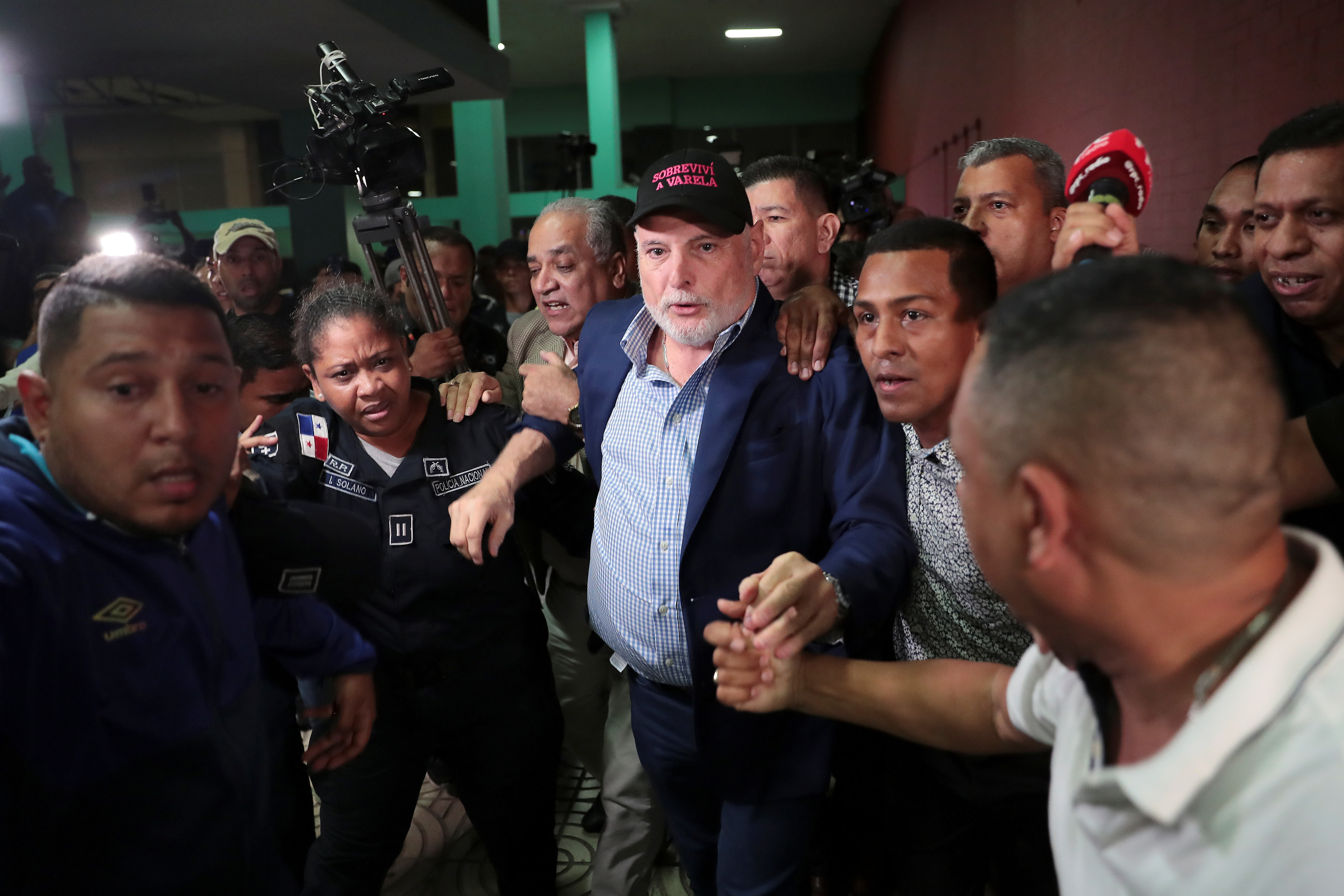 巴拿馬前總統裏卡多·馬丁內利在巴拿馬城的一家法院被警察和支持者護送離開,因被指控間諜罪名而被宣判無罪,時間為2019年8月9日。馬丁內利的帽子上寫着“我倖存了瓦雷拉”,指的是巴拿馬前總統胡安·卡洛斯·瓦雷拉。路透社/Erick… 閲讀更多