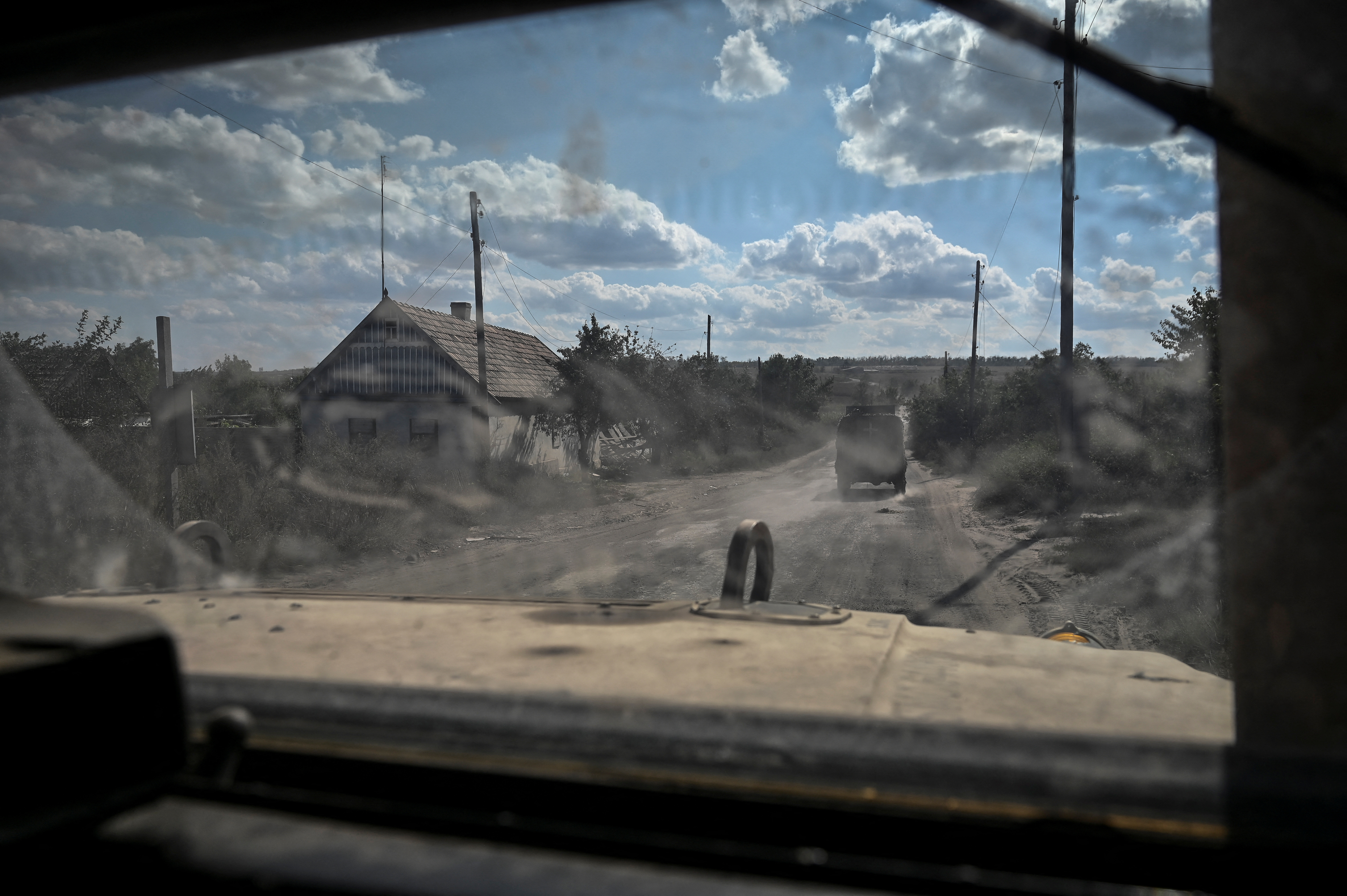 烏克蘭第3獨立突擊旅的軍車在俄羅斯對烏克蘭的攻擊中進行偵察任務時行駛在巴赫穆特附近的道路上,2023年9月7日。路透社/記者/文件照片