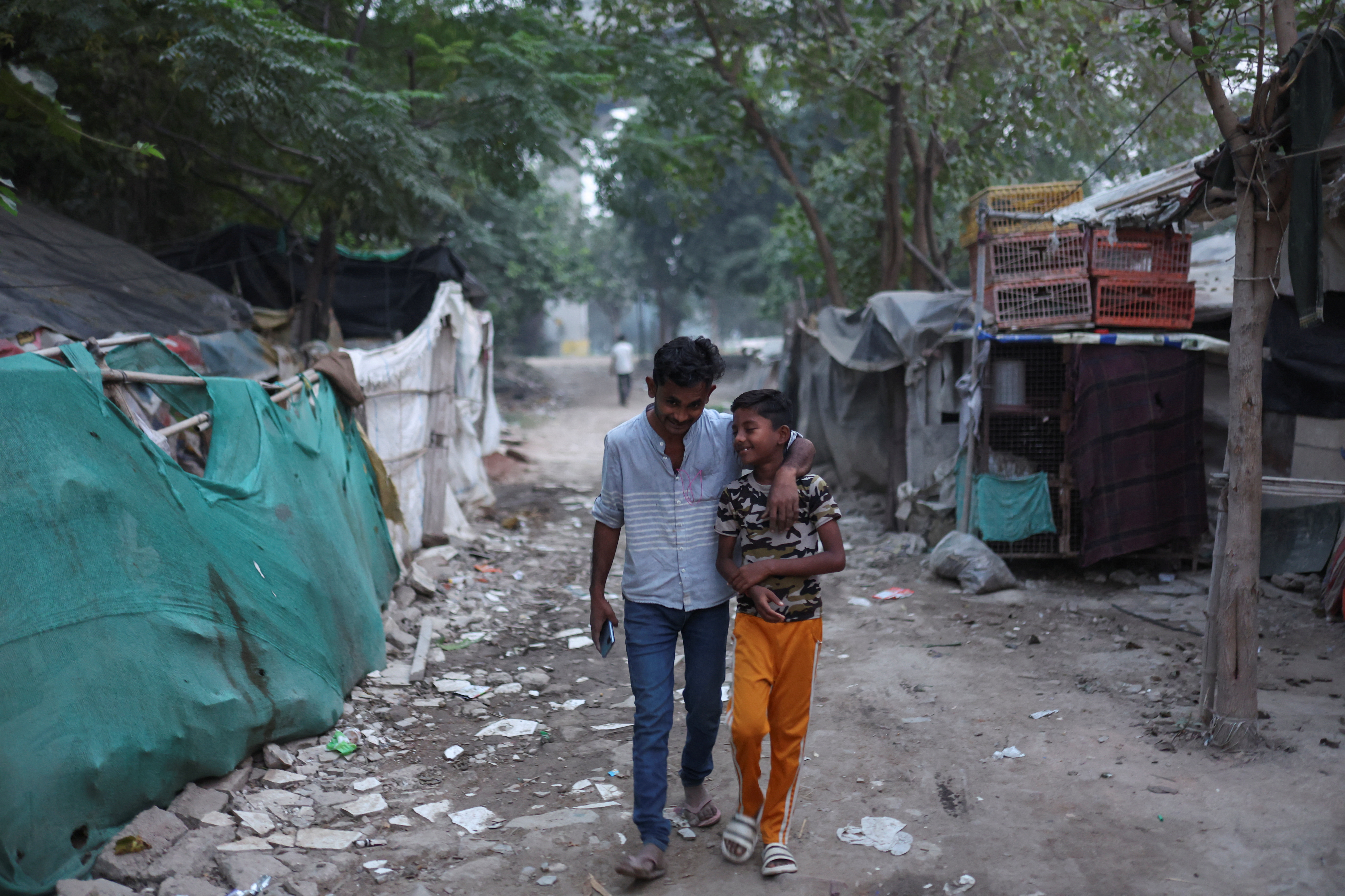 莫里亞説:“如果我因空氣污染而生病死去,那我寧願在工作時死去,因為我還要養活家人。”他的竹製小屋被雅姆納河的霧霾籠罩着。