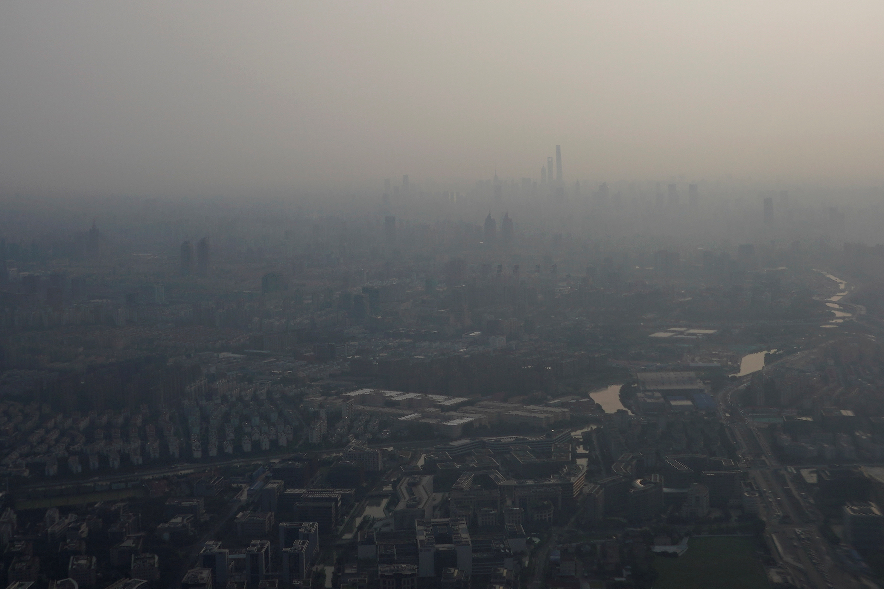 上海市建築物在濃霧籠罩下的一般景觀,中國,2018年10月18日。路透社/宋艾裏/文件照片