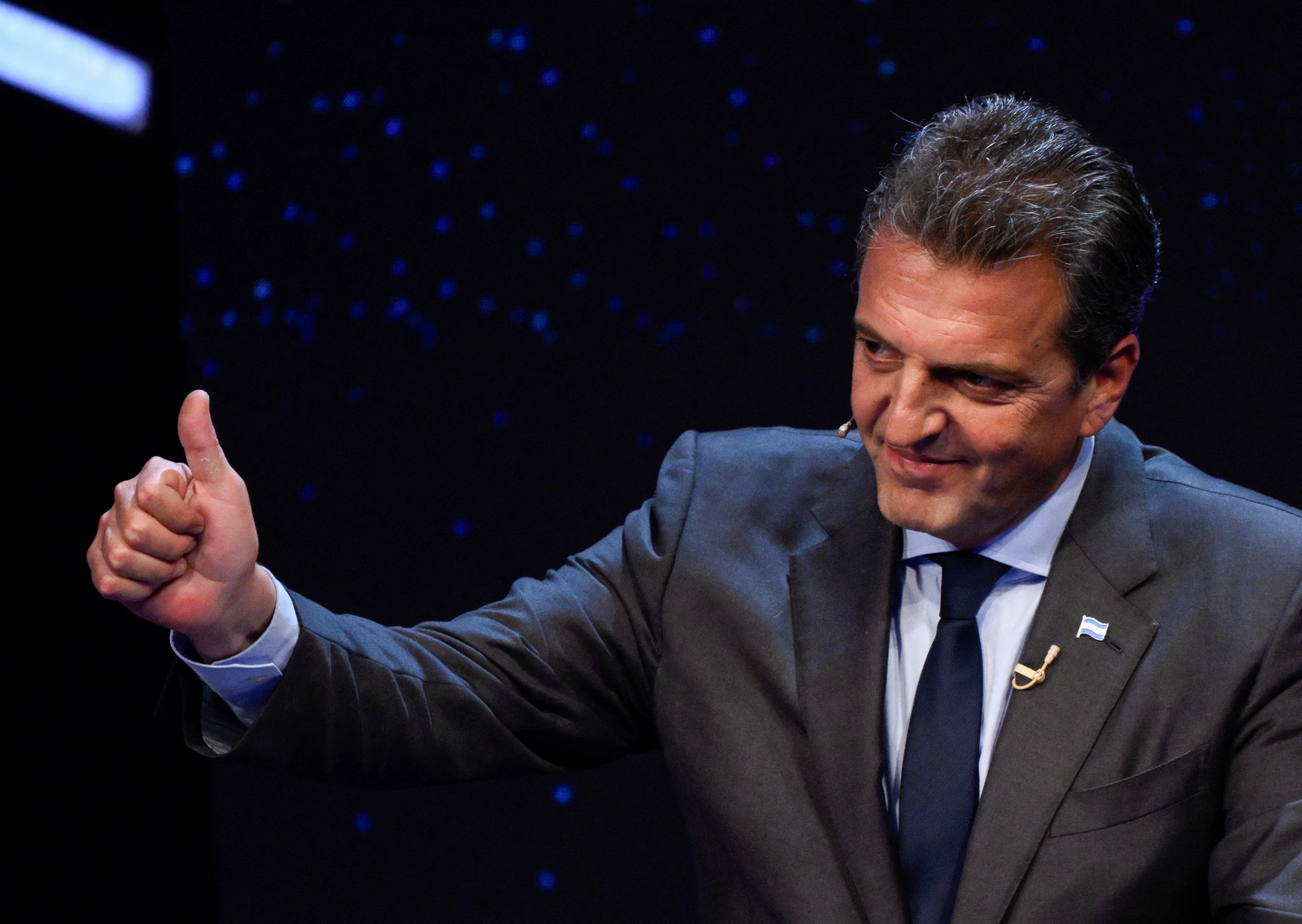 阿根廷總統候選人Sergio Massa參加11月12日在布宜諾斯艾利斯大學法學院舉行的總統辯論,該辯論是在2023年11月19日決選之前舉行的,攝於阿根廷布宜諾斯艾利斯,攝影:Luis Robayo/路易斯·羅巴約/泳池通過REUTERS/檔案照片