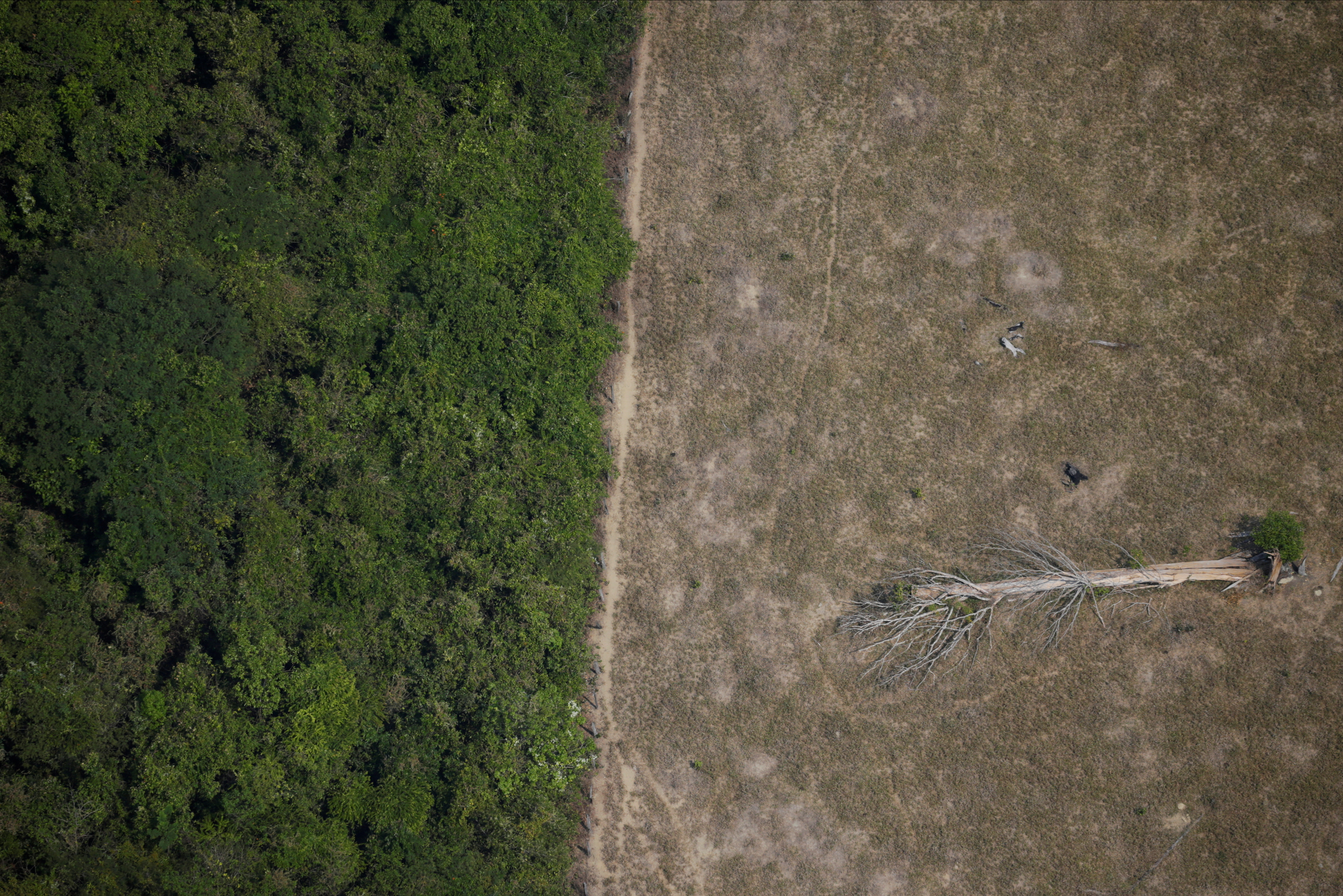 一棵倒下的樹橫卧在巴西朗多尼亞州波爾圖韋略附近被伐木工和農民清理過的亞馬遜叢林地區,2020年8月14日。路透社/烏埃斯萊·馬塞利諾/檔案照片
