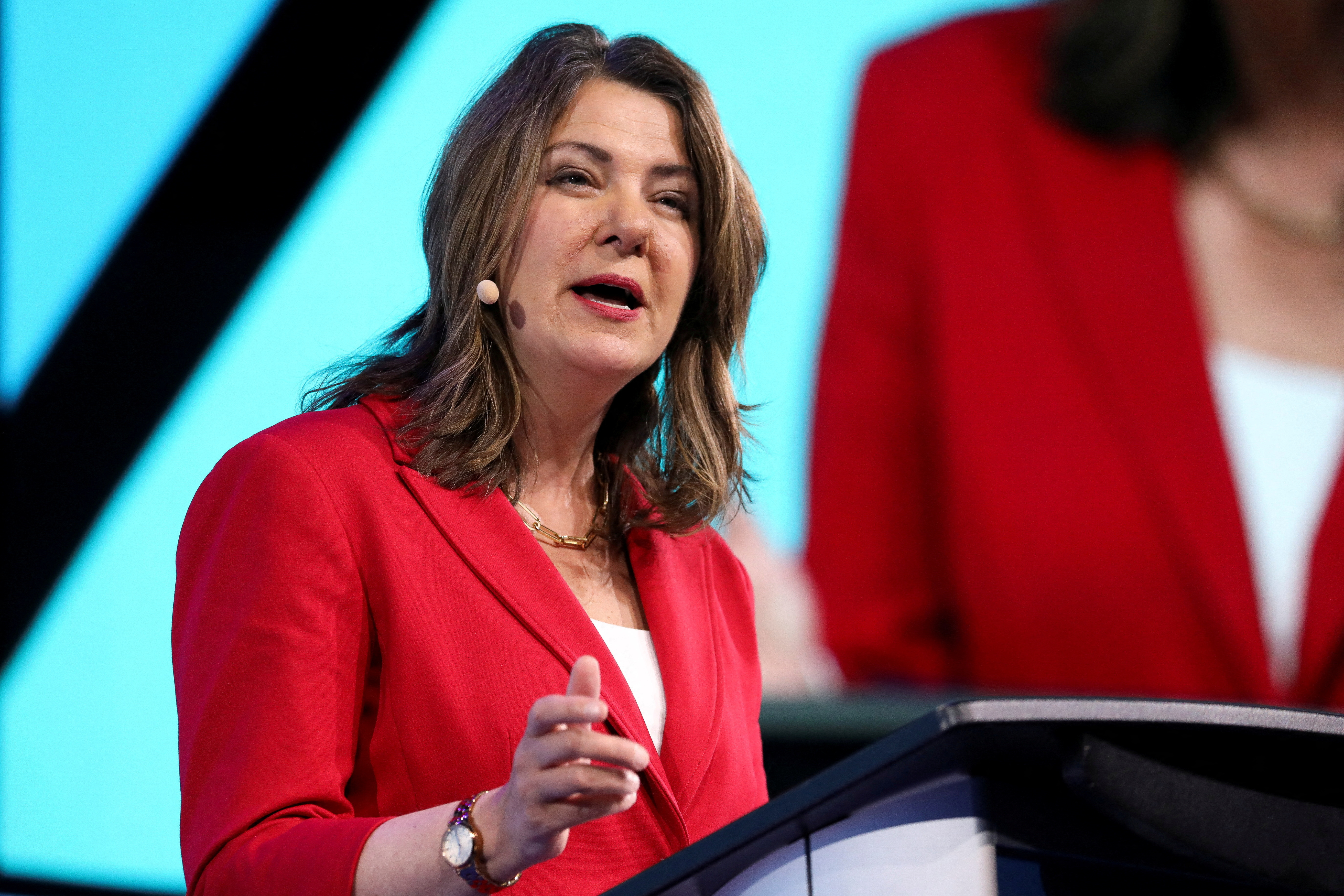 艾伯塔省省長丹妮爾·史密斯在2023年7月13日於加拿大不列顛哥倫比亞省温哥華舉行的LNG 2023能源會議上發表主題演講。路透社/克里斯·赫爾格倫/文件照片