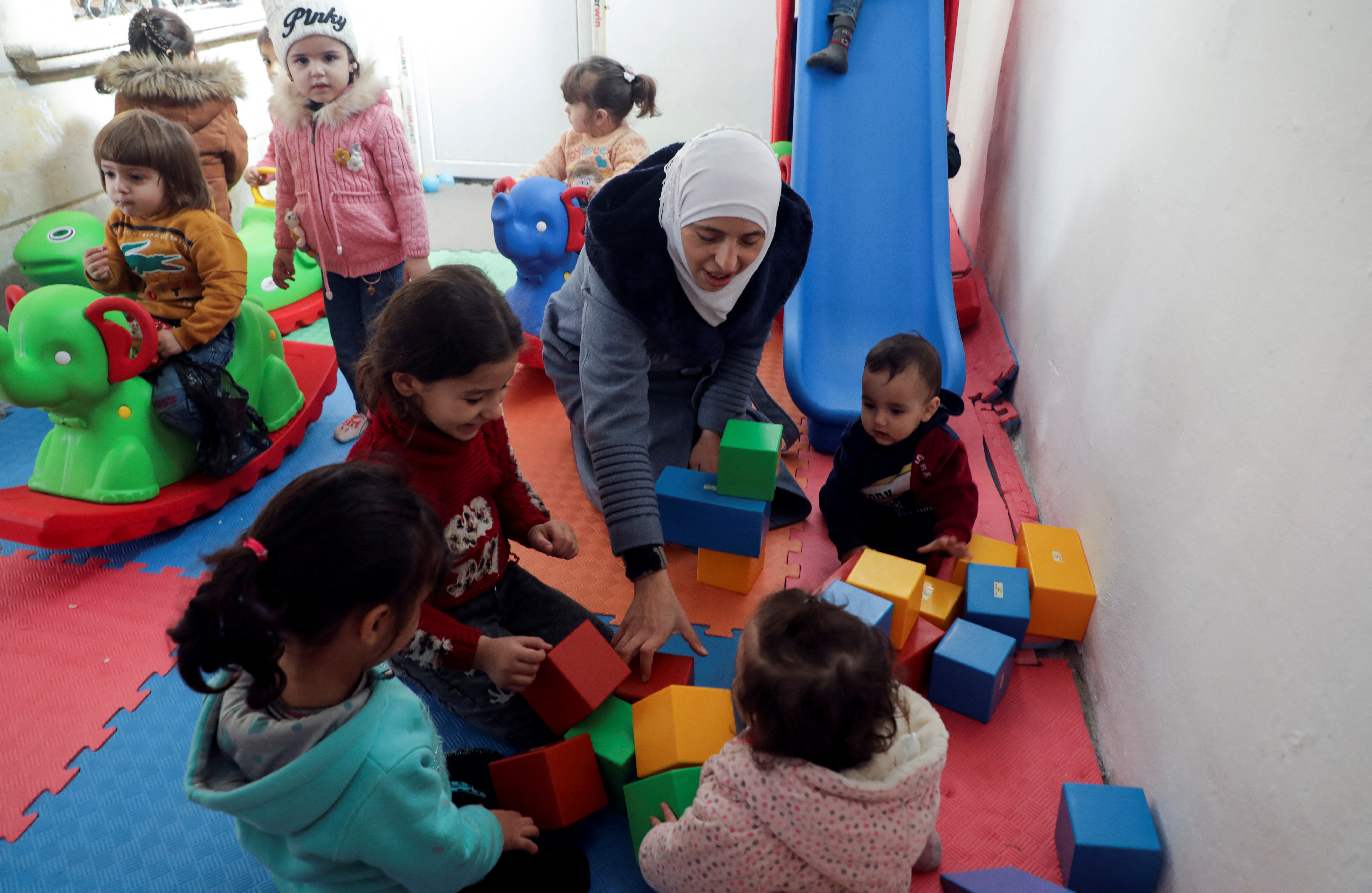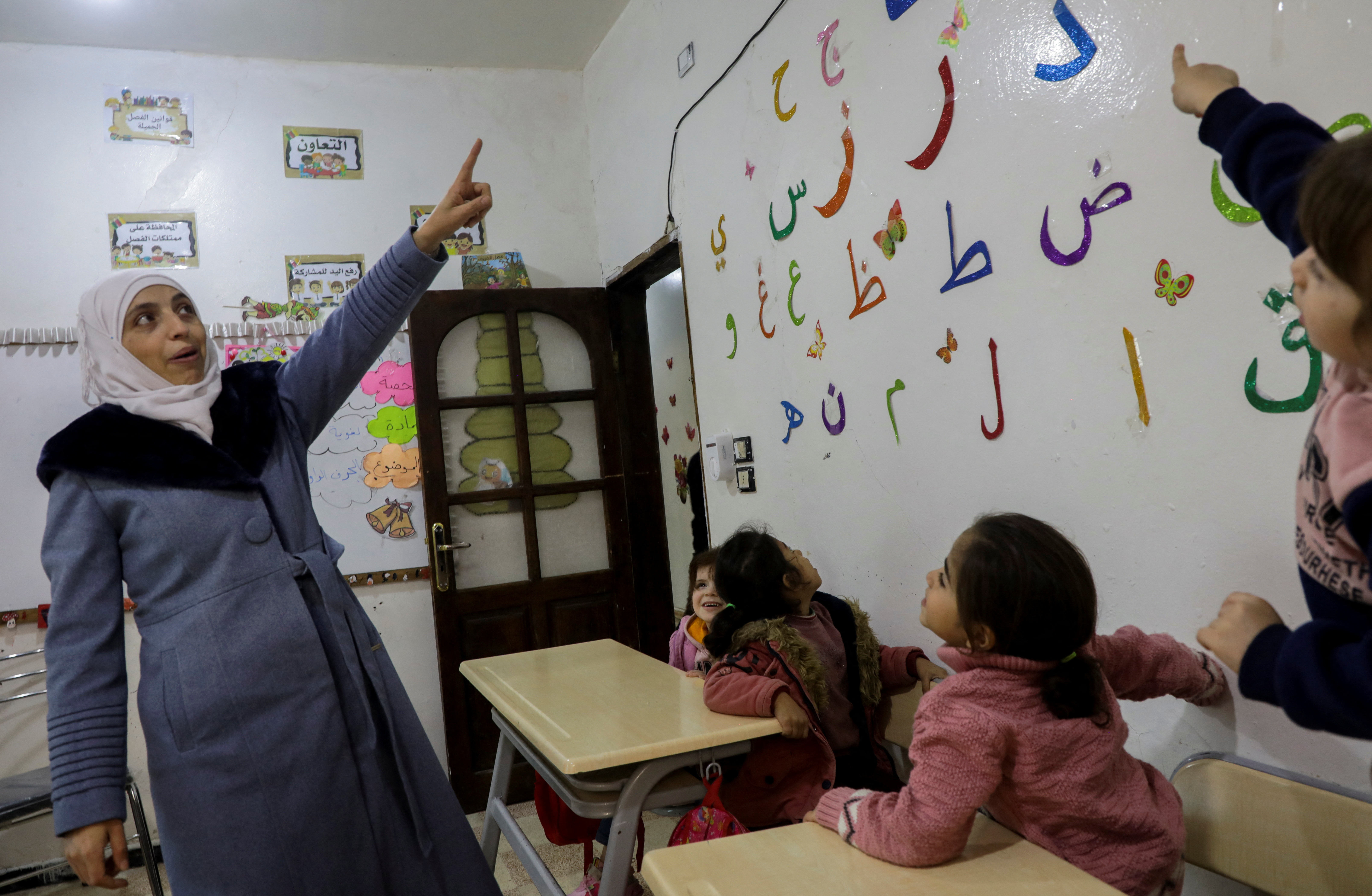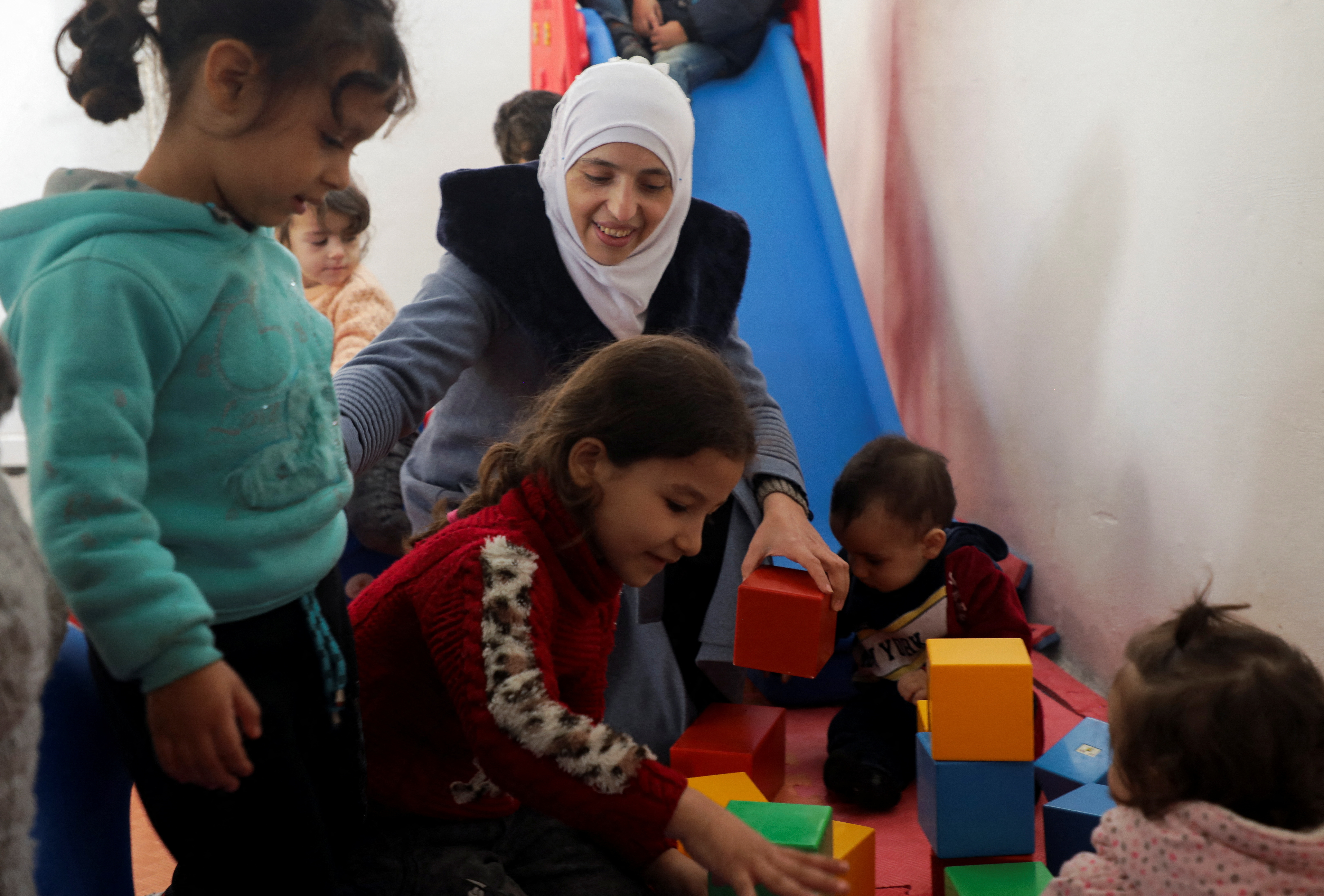 薩法·卡梅爾,35歲,一名教師,她説她在2013年敍利亞東古塔地區的家遭受了化學武器襲擊,導致健康受到影響,現在流離失所,居住在敍利亞西北部的阿夫林地區,在敍利亞北部城鎮阿夫林的一所學校裏和孩子們玩耍,攝於2023年11月28日… 閲讀更多