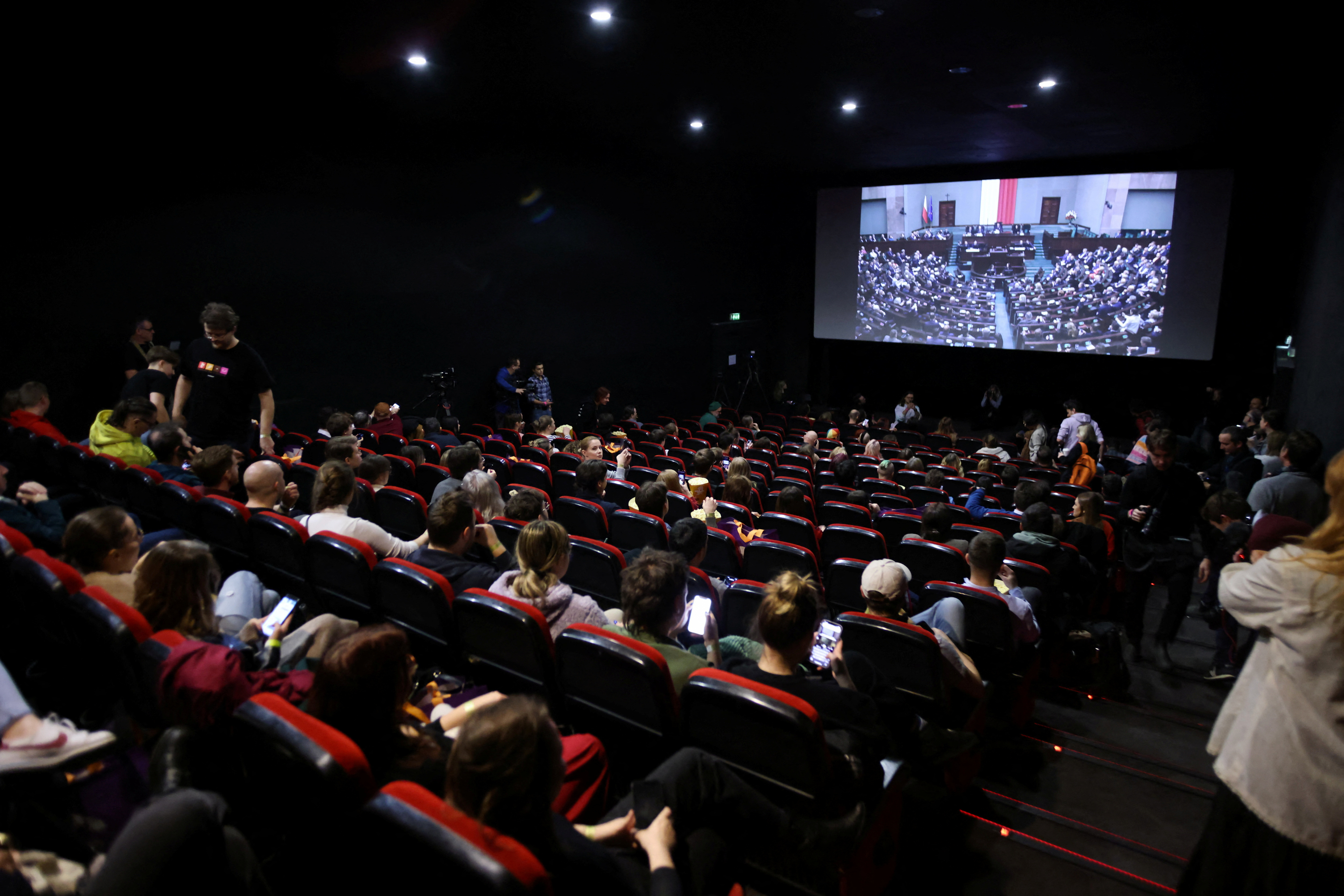 華沙,12月11日(路透社)- 數百名波蘭人週一前往華沙市中心的一家電影院觀看議會會議,預計這次會議將迎來由唐納德·圖斯克領導的新的親歐盟政府,這表明權力交接引發了極大的關注。
