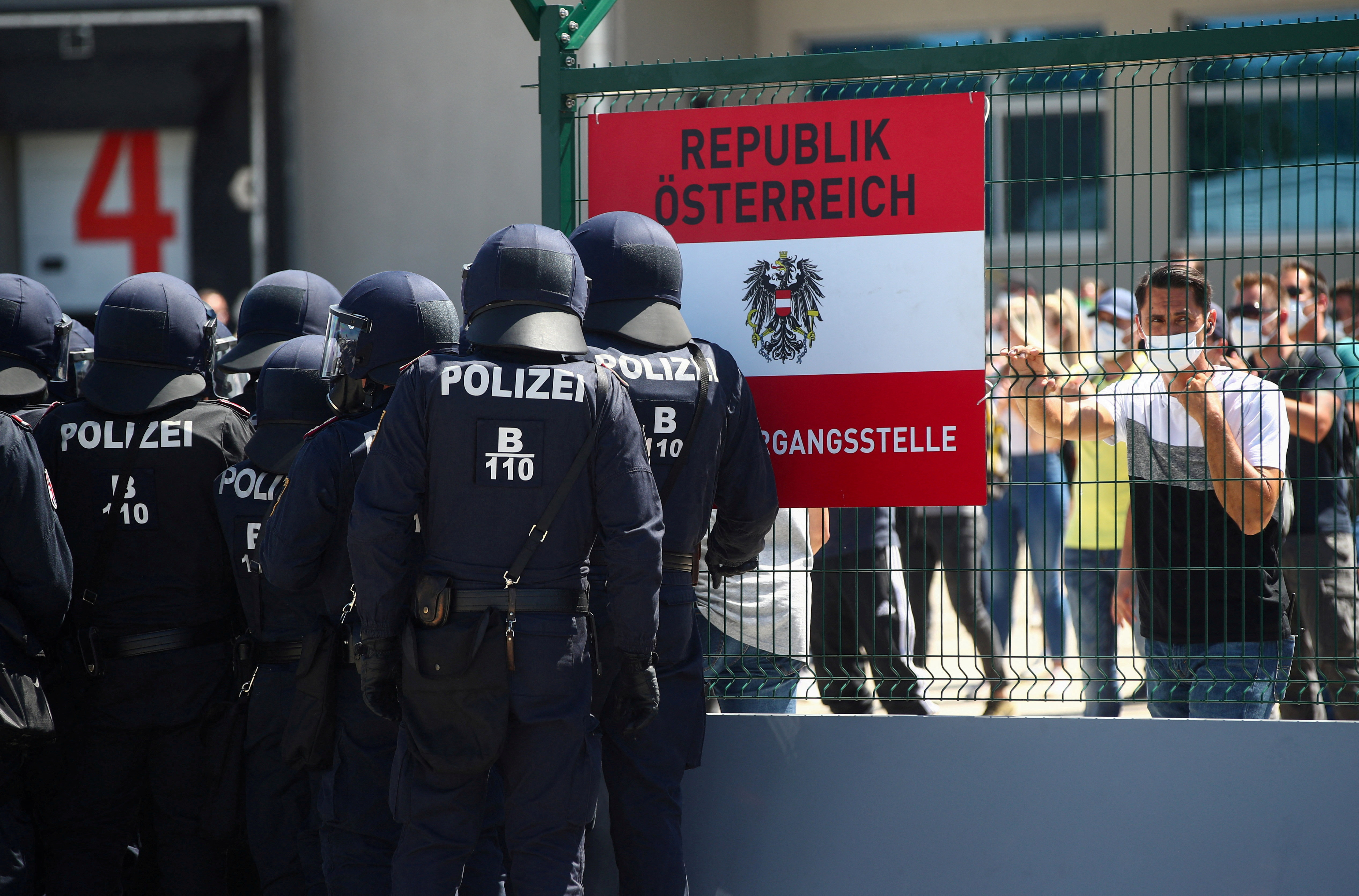 奧地利警察參加了一次演習,防止移民從匈牙利越境進入奧地利的尼克爾斯多夫,2020年7月2日。路透社/利西·尼斯納/檔案照片