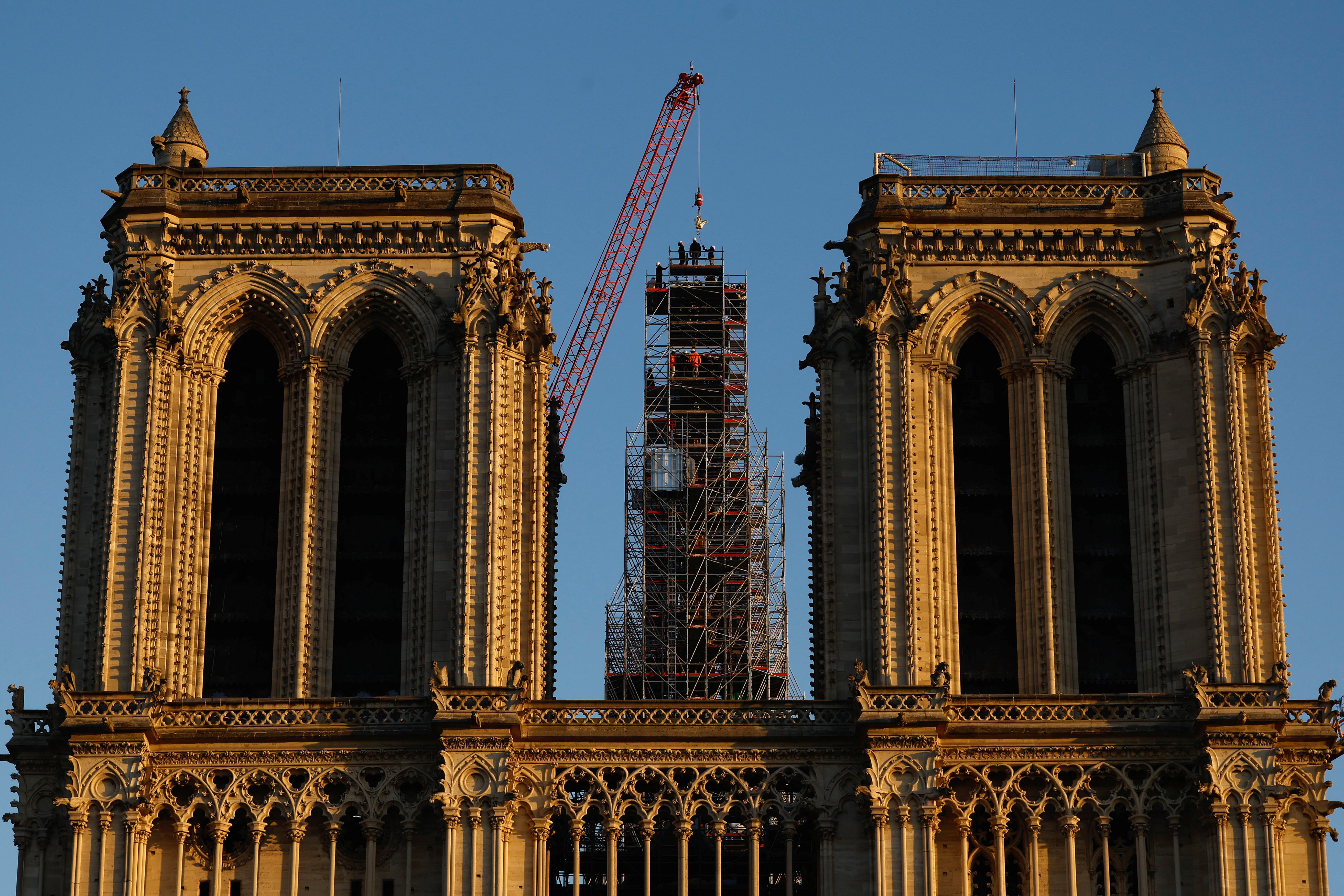 巴黎聖母院的屋頂上的公雞回到尖頂上,翻新工程進入最後階段 | 路透社