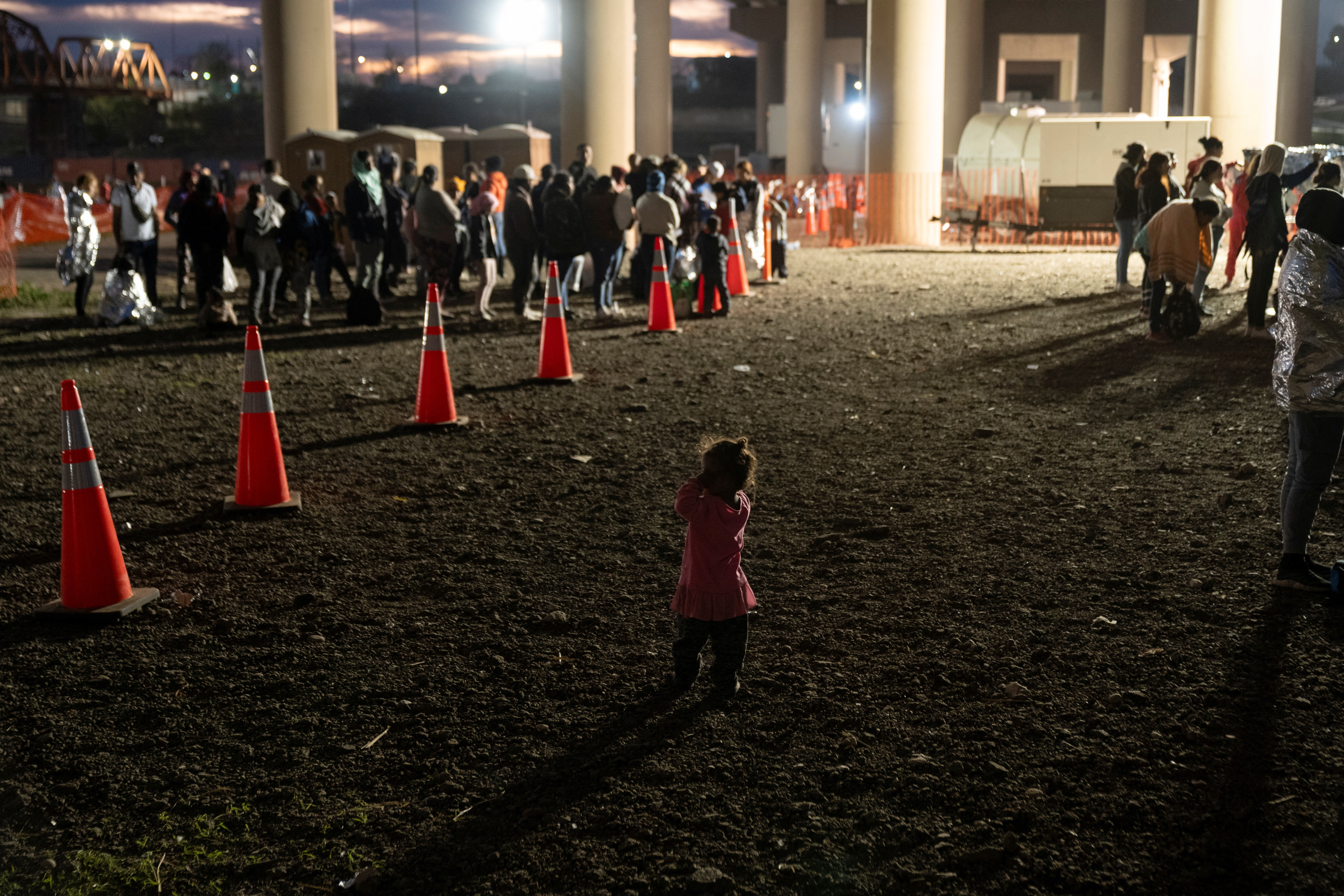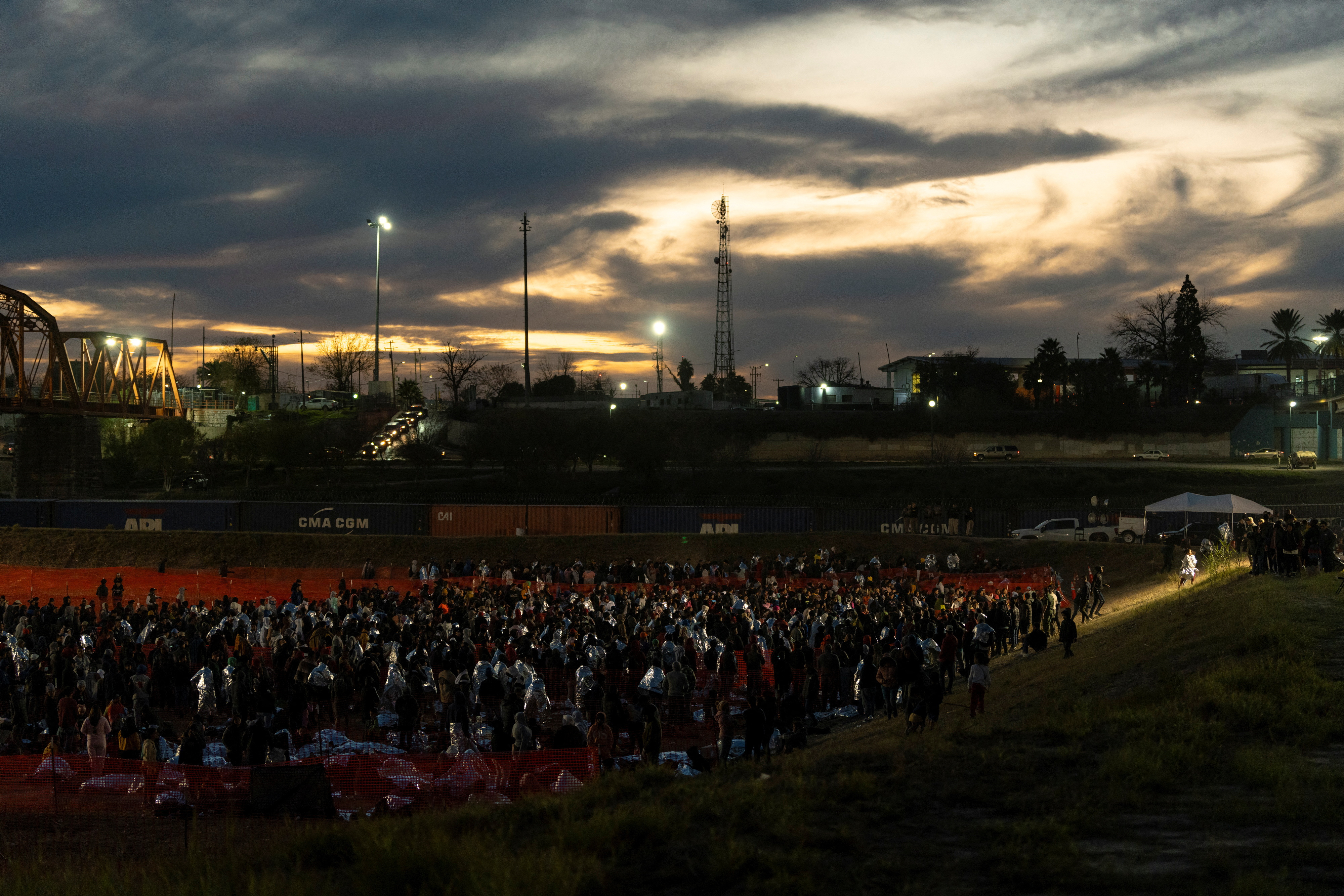 移民們在美國德克薩斯州鷹渡市的一個處理中心等候,2023年12月19日。路透社/切尼·奧爾攝