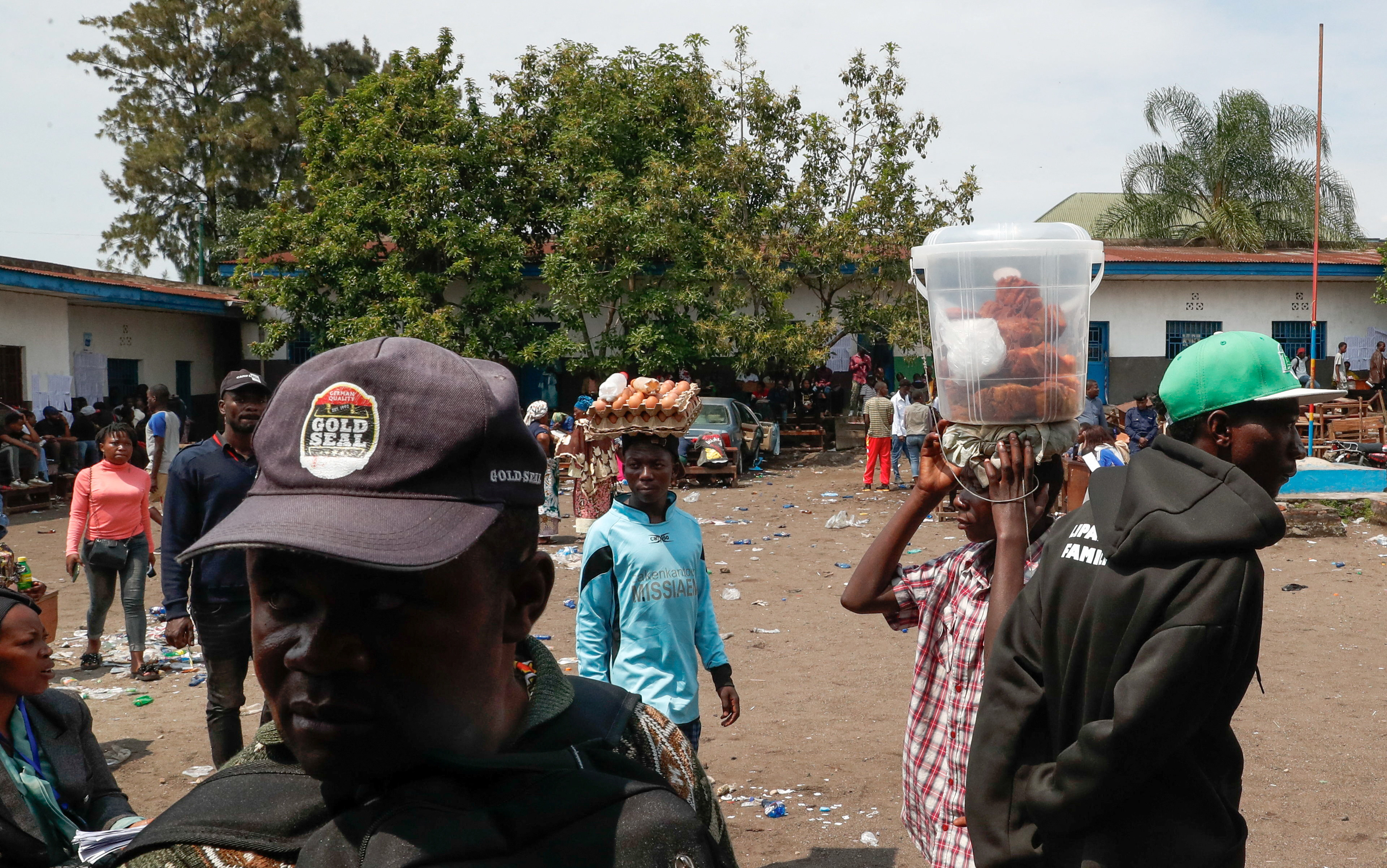 供應商在剛果民主共和國北基伍省戈馬市議會和總統選舉期間攜帶食物,2023年12月21日。路透社/托馬斯·穆科亞/文件照片