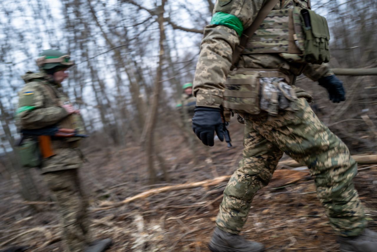 烏克蘭士兵在巴赫穆特附近的樹林中隱蔽。圖片來源:Spencer Platt/Getty Images