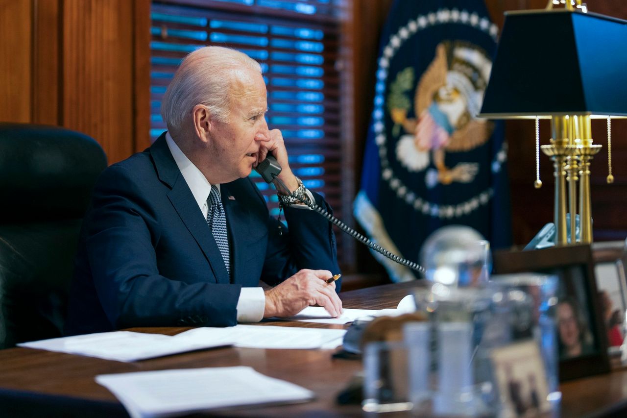 喬·拜登於2021年12月30日在其位於特拉華州威爾明頓的私人住所接聽電話。圖片來源:亞當·舒爾茨/美聯社刊登於2023年1月20日印刷版,標題為《司法的雙重標準》。