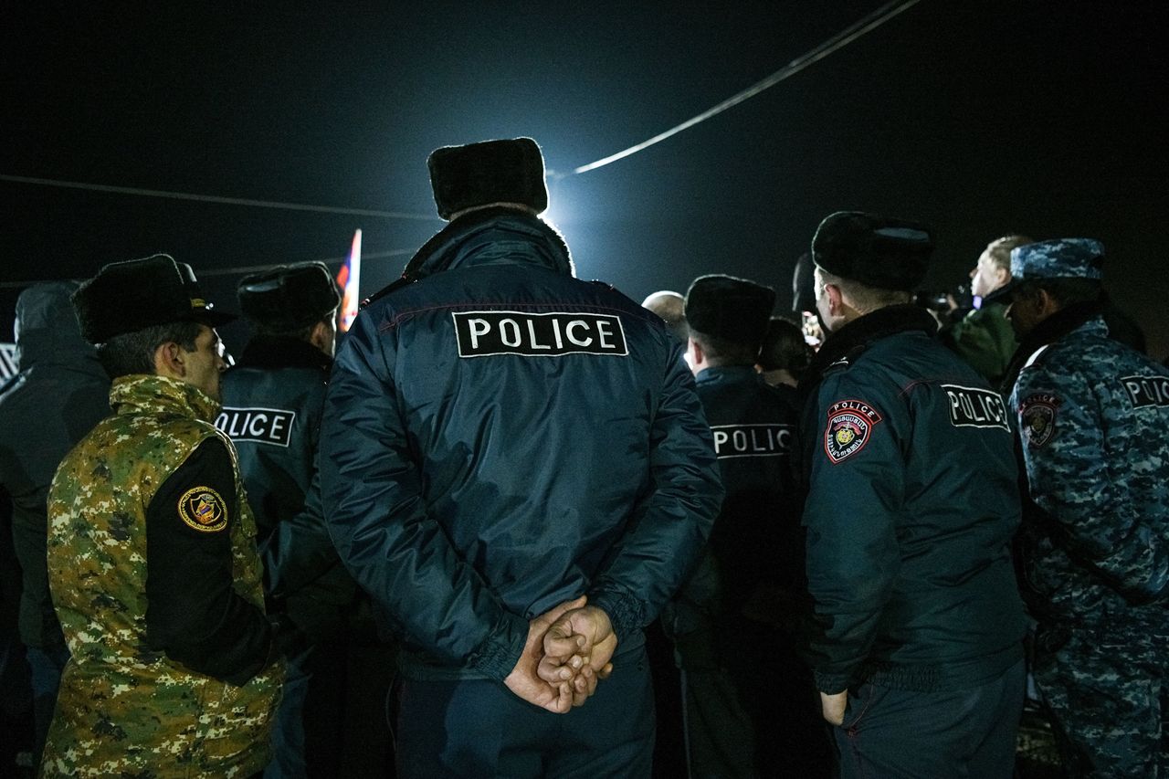 警察在連接亞美尼亞與阿塞拜疆的拉欽走廊邊界警戒。照片:亞歷山大·帕特林/祖馬通訊社聯繫安·M·西蒙斯,郵箱:[email protected]