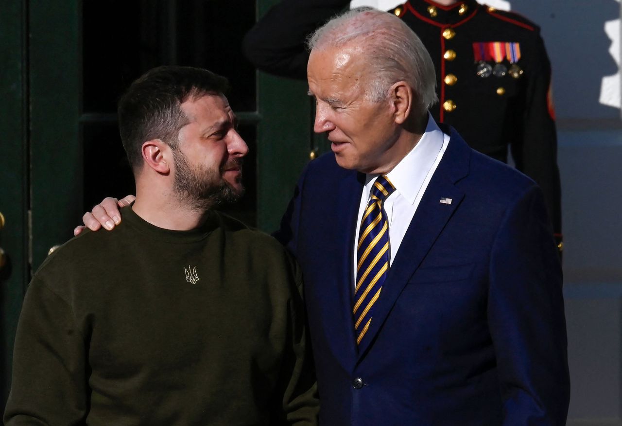 2022年12月21日,美國總統喬·拜登在華盛頓迎接烏克蘭總統弗拉基米爾·澤連斯基。圖片來源:olivier douliery/法新社/蓋蒂圖片社刊載於2023年1月21日印刷版,標題為《關於美國為烏克蘭而戰的辯論正當時》