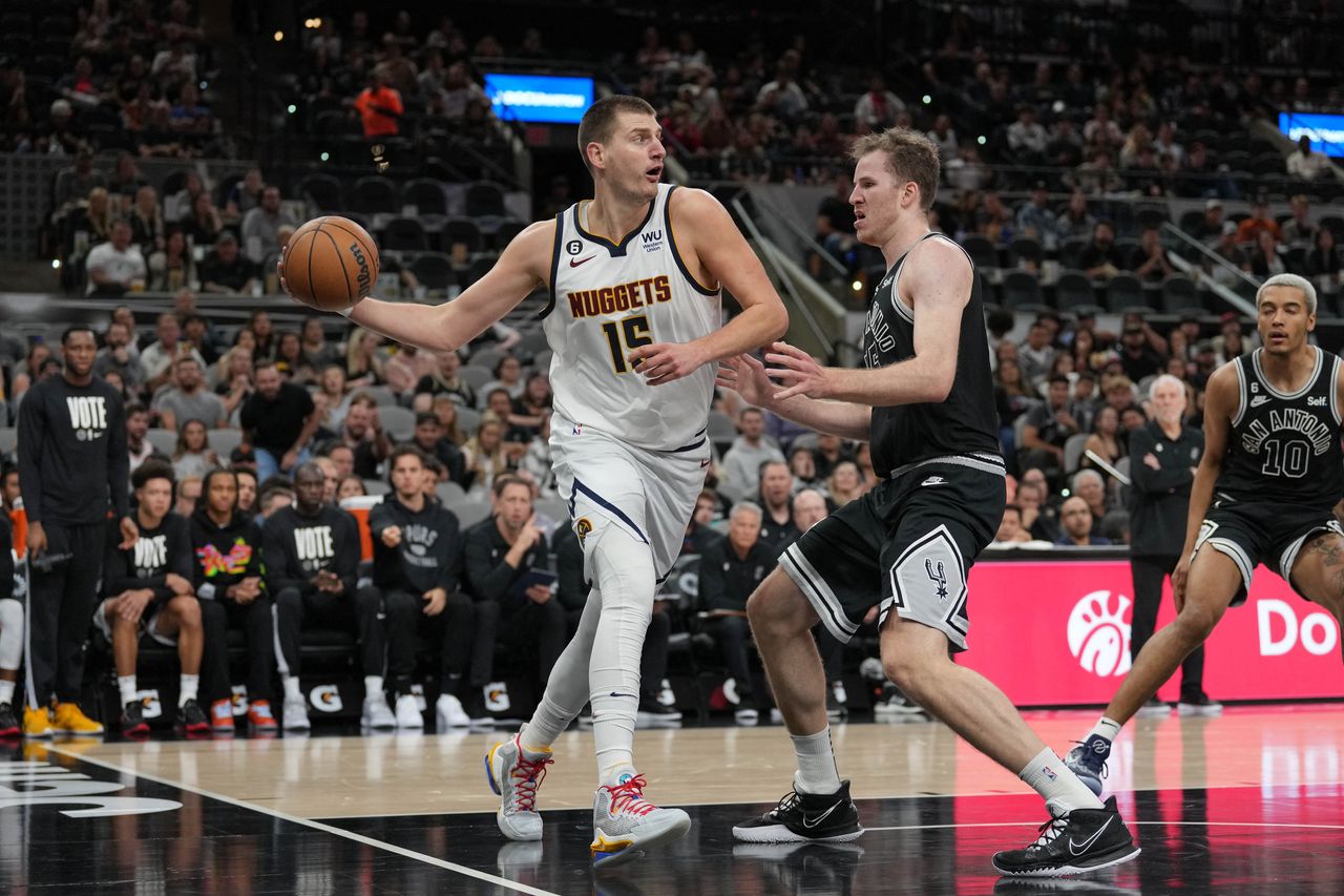 尼古拉·約基奇面對聖安東尼奧馬刺隊中鋒雅各布·珀爾特爾尋求傳球機會。圖片來源:丹尼爾·鄧恩/今日美國體育在評價約基奇的比賽及其對前隊友的優勢時,史密斯將精彩傳球按類別區分:那些需要預判空位或抓住意外機會的傳球,快速出手或柔和觸球。史密斯表示,約基奇能完成各種傳球,但他特別指出自己最欣賞的一種。