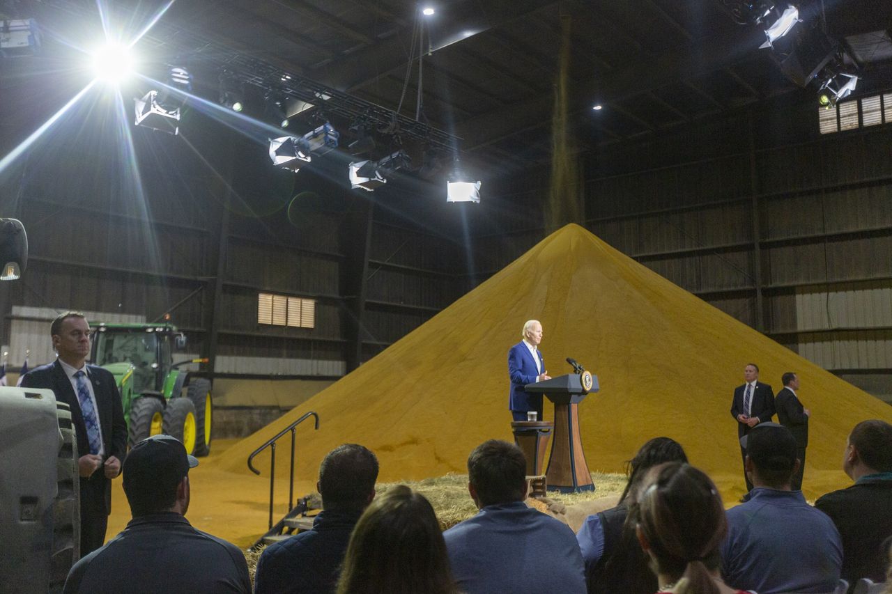 拜登總統4月在愛荷華州門洛市一家生物加工設施發表講話。圖片來源:Rachel Mummey/Bloomberg News### 反對觀點:乙醇燃料名不副實且危害環境