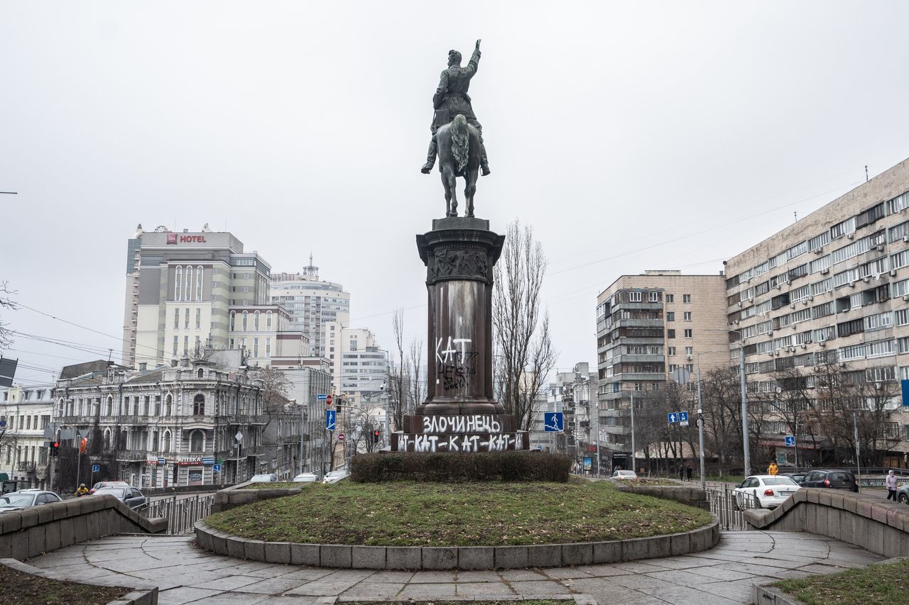 在共產主義軍事領導人尼古拉·肖爾斯紀念碑上,寫着“屠夫”、“殺手”和“強盜”等字樣。莫斯科長期以來對待其控制的鄰國如烏克蘭的方式是通過俄語和文學擠壓當地文化,並宣揚其優越性。