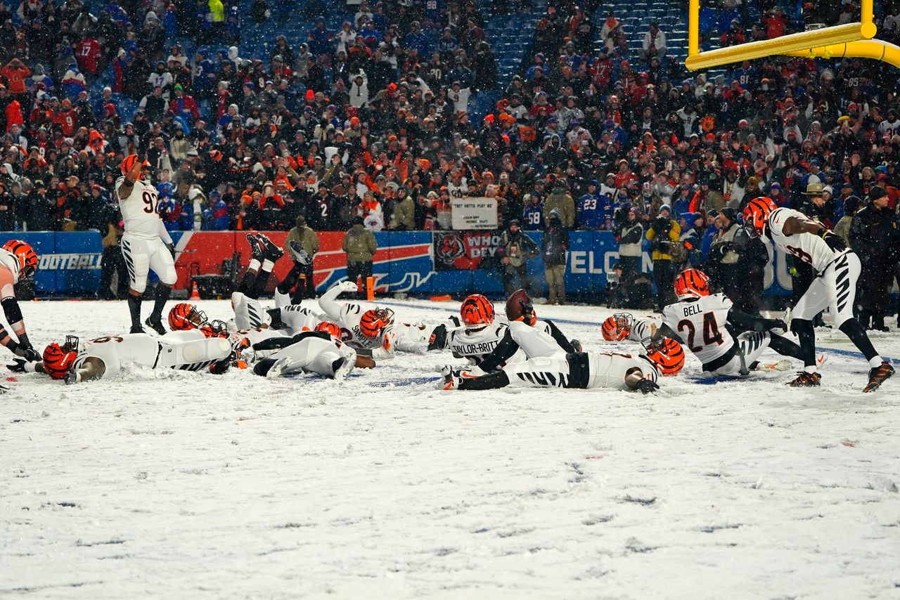 猛虎隊球員在季後賽戰勝比爾隊後於雪中慶祝。圖片來源:格雷戈裏·費舍爾/今日美國體育辛辛那提猛虎隊同樣歡迎任何輕視。他們上賽季打進了超級碗,但也遇到不少質疑其實力的人。猛虎隊並非公認的超級碗迴歸熱門。人們懷疑去年的表現只是,你知道的,僥倖。