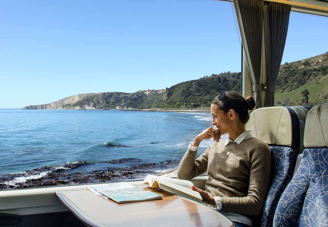新西蘭最美鐵路線之一,沿太平洋海岸線蜿蜒前行。圖片來源:新西蘭壯美旅程### 1. 奇異鳥海岸列車