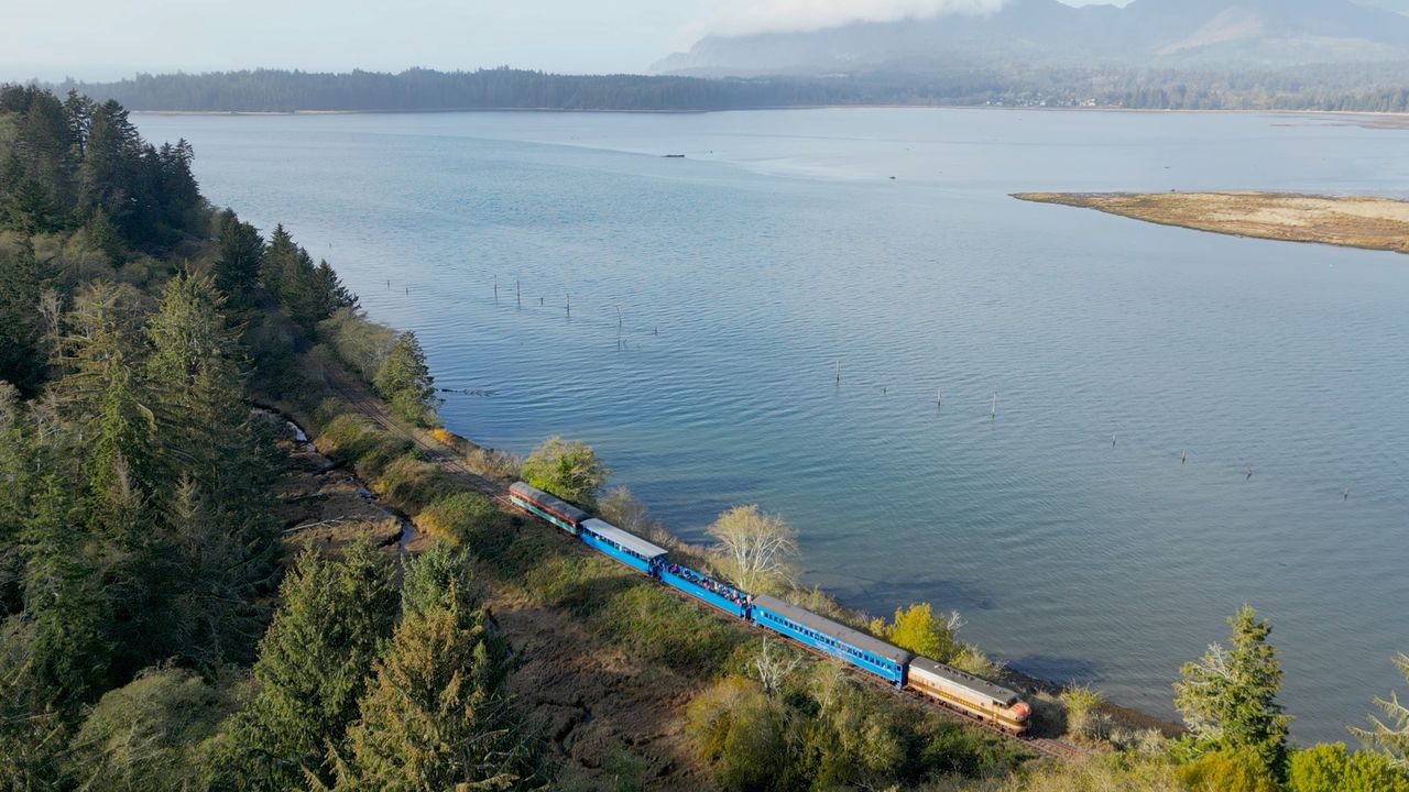 圖中所示為俄勒岡州惠勒市外尼哈勒姆河入口處,俄勒岡海岸風景鐵路沿太平洋海岸行駛。攝影:卡姆倫·塞特勒米爾### 2. 俄勒岡州的懷舊之旅