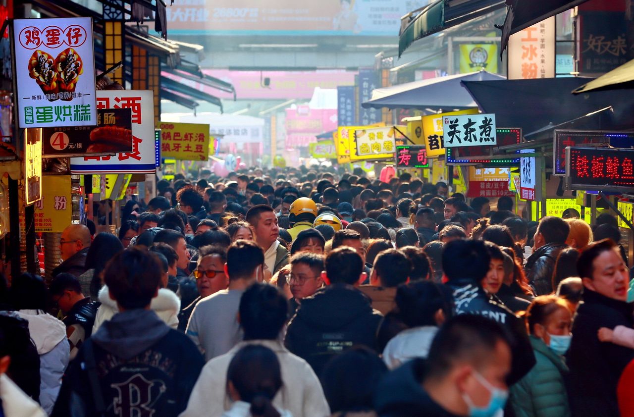 本週中國四川省的遊客。最新數據顯示,春節期間旅遊業出現強勁反彈圖片來源:Cfoto/Zuma Press根據野村證券基於官方數據計算,自1月7日春運啓動以來,日均旅客量達3680萬人次,較2022年同期增長約50%,但比2019年下降47%。