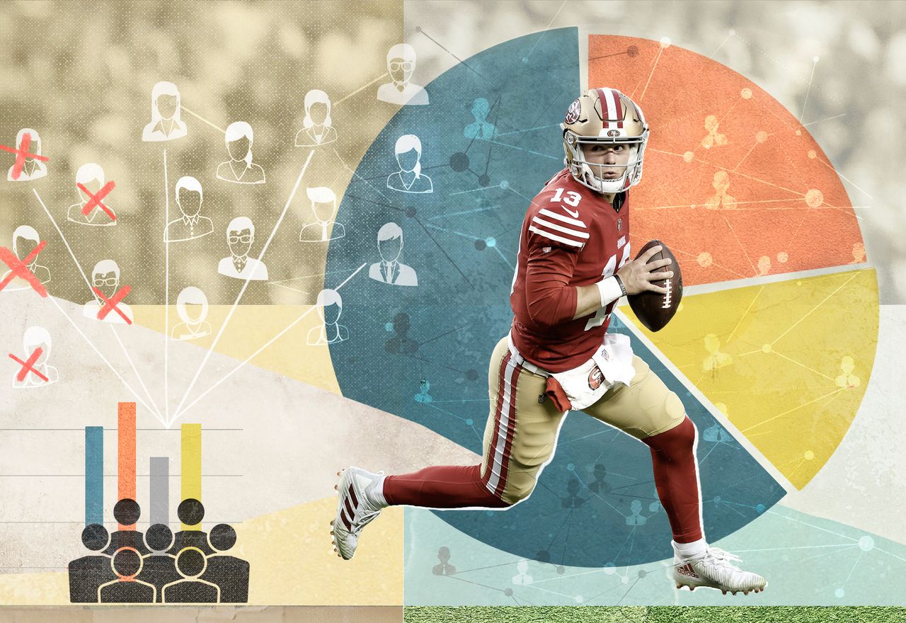 珀迪先生和49人隊將在本週末爭奪超級碗入場券。圖片來源:埃茲拉·肖/蓋蒂圖片社儘管科技公司和橄欖球隊都標榜自己擁有完善的人才識別體系,但兩者都可能陷入羣體思維。它們在人事決策上的困境遠超願意承認的程度,因為人類會犯錯,大腦也會欺騙我們。