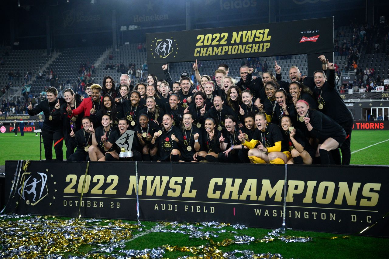 2022年波特蘭荊棘隊贏得美國國家女子足球聯賽冠軍後與獎盃合影。圖片來源:尼克·瓦斯/美聯社據知情人士透露,美國國家女子足球聯賽(NWSL)正就擴編三支球隊進行深入談判,其中兩支球隊的特許經營費將高達約5000萬美元,遠超此前加盟該聯賽的費用標準。