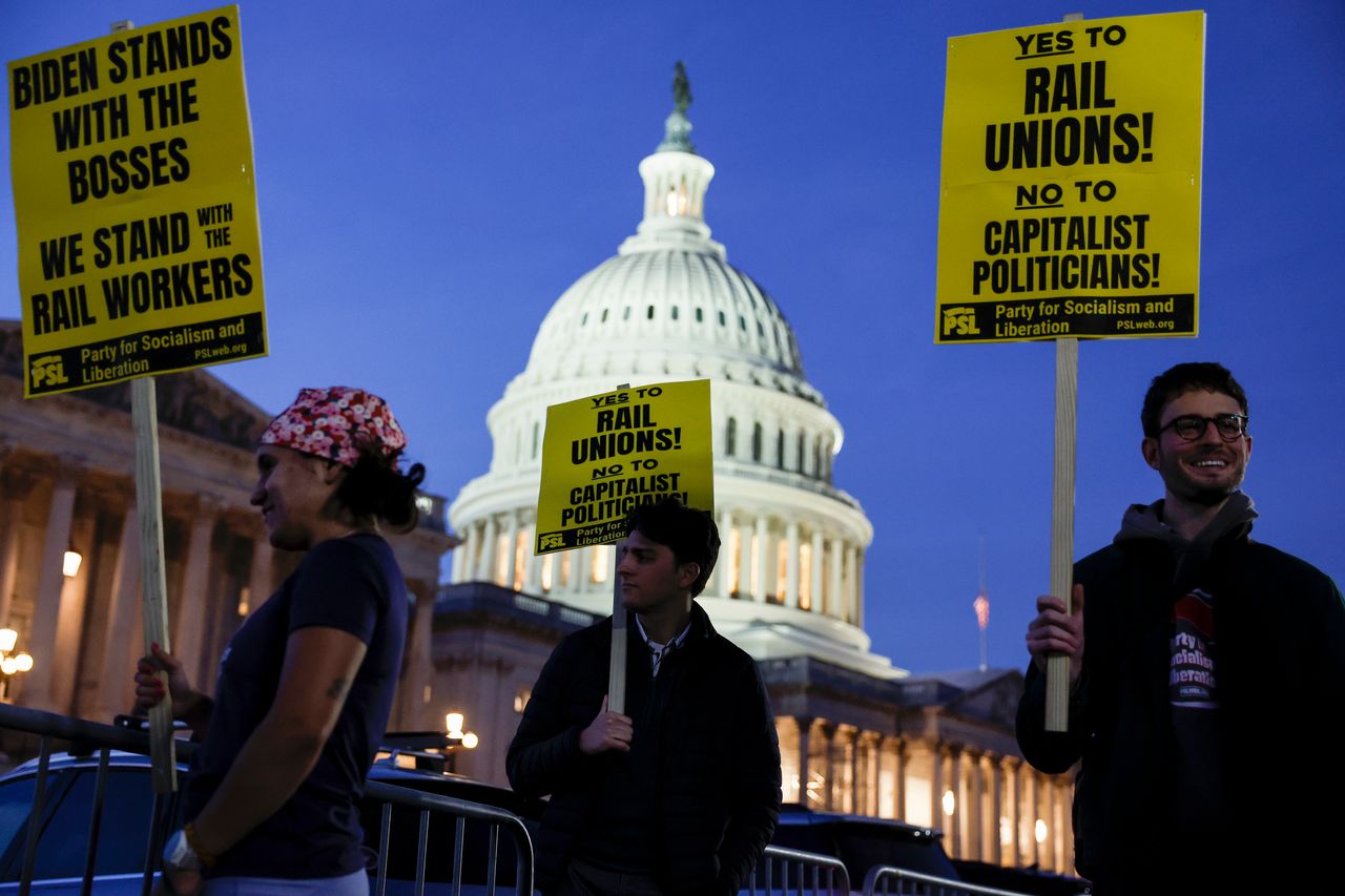 11月29日,鐵路工人支持者在美國國會大廈外示威。六名共和黨參議員支持工人要求僱主增加病假薪酬的訴求。圖片來源:Anna Moneymaker/Getty Images代表底特律西郊及南部密歇根州第六選區的民主黨眾議員黛比·丁格爾承認,特朗普"確實注意到了那些目睹工作崗位流失海外、擔憂退休保障的民眾的焦慮”。