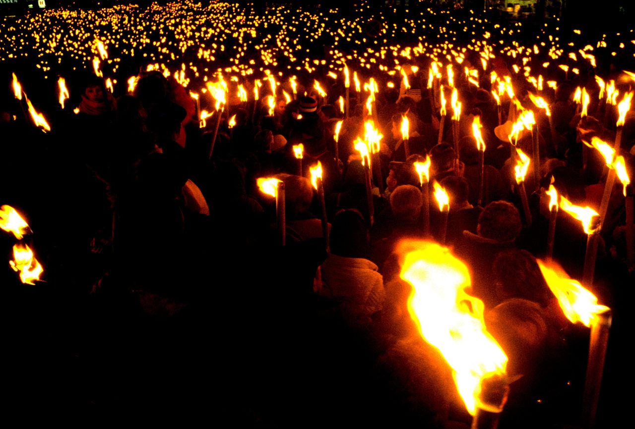 1986年瑞典首相奧洛夫·帕爾梅遇刺後,奧斯陸舉行的火炬守夜活動。圖片來源:Alamy瑞典作家克里斯托弗·卡爾松的《為我點燃太陽》被美國出版商宣傳為“一部關於犯罪的小説”。這部引人入勝的作品雖然具備傳統警察程序小説的諸多元素,但也突破了類型界限,展現了致命暴力對幾代不同角色心理與命運的影響。
