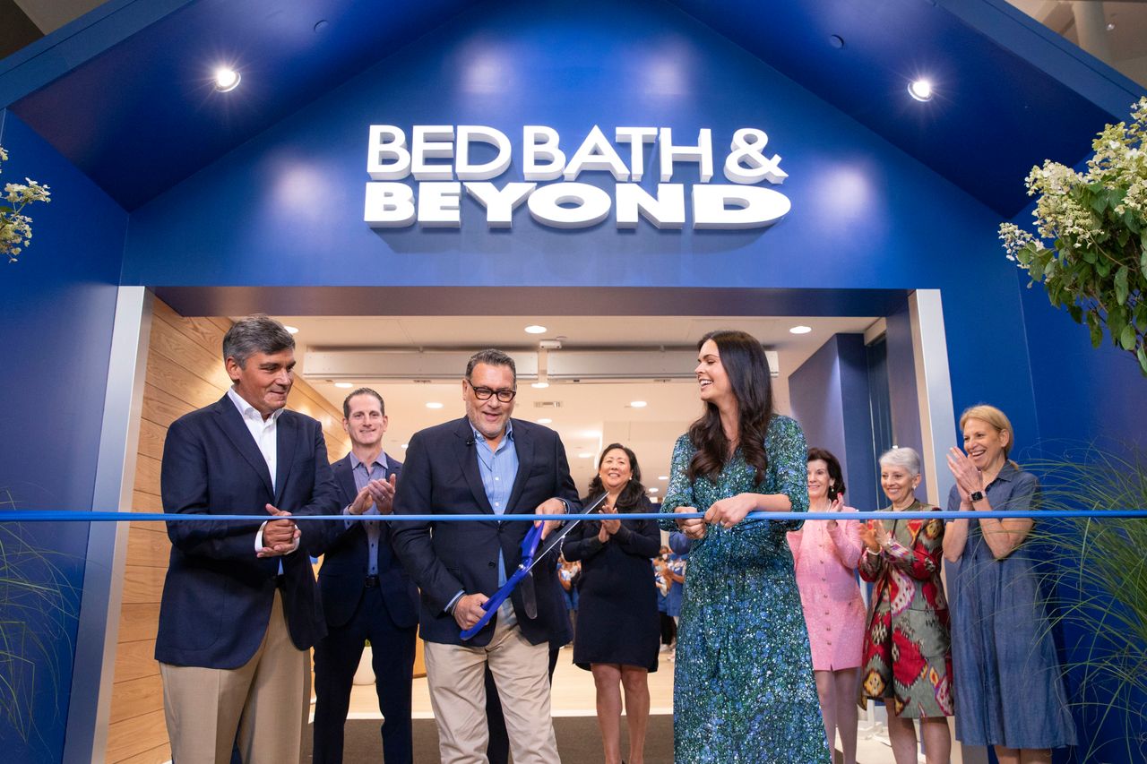 重組後的董事會於2019年聘請了馬克·特里頓(圖中手持超大剪刀者)擔任CEO。照片:Andrew Kelly/AP images for bed bath & Beyond“我們過去常説,‘這家公司的規矩是你永遠不能對顧客説不,’”艾森伯格先生説。“如果你覺得不應該做,那就找你的上級,必須一直報到經理那裏,才能對顧客説不。”