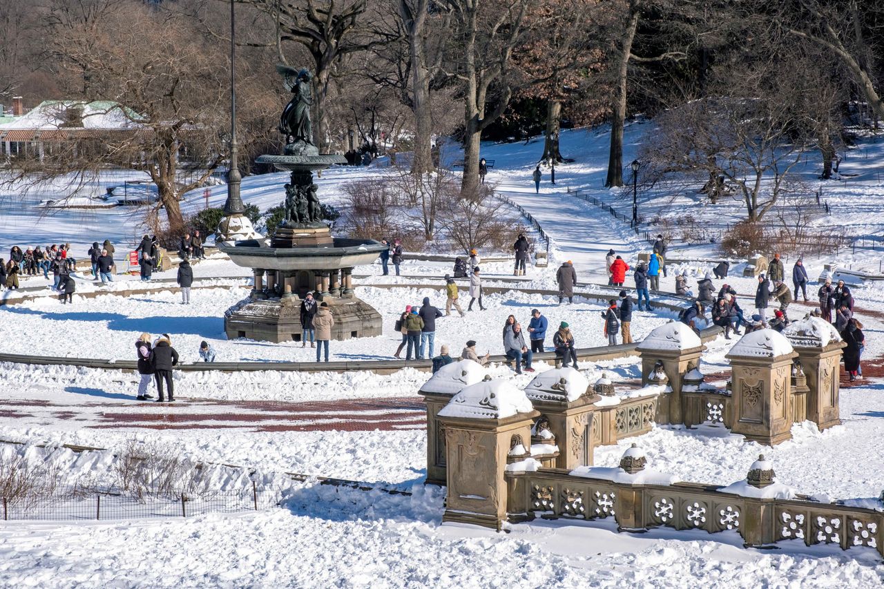 一年前中央公園的雪景。圖片來源:米洛·赫斯/祖瑪通訊社今冬紐約氣温較常年偏高,週四(1月26日)達57華氏度(約14攝氏度)。無雪狀態意味着市政無需出動掃雪車,本就時常擁堵的市區交通也未遭遇暴風雪癱瘓。