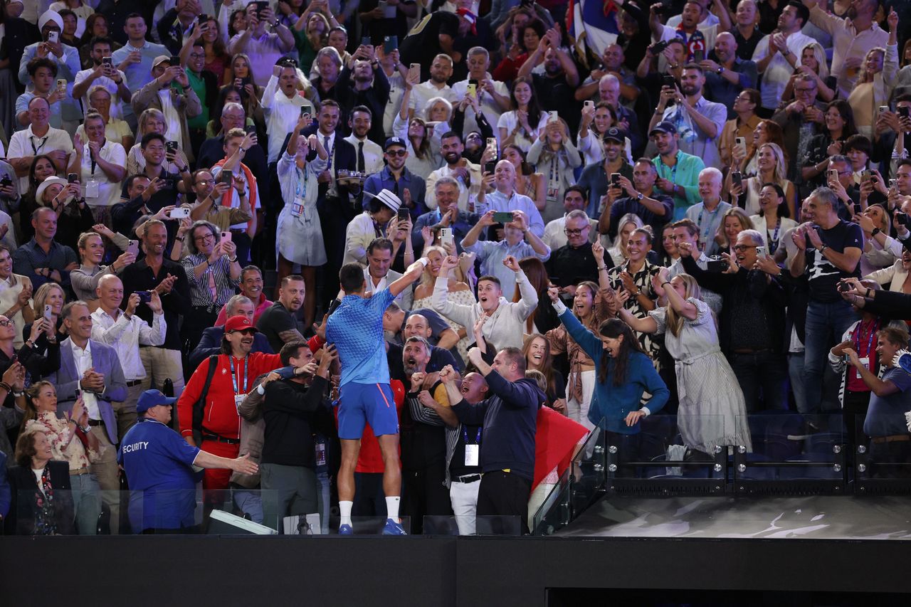 澳大利亞網球公開賽張開雙臂歡迎他迴歸——至少在週日擠滿希臘觀眾的羅德·拉沃爾球場之前是如此。即便當情況可能急轉直下時,德約科維奇依然掌控着局面。他未讓持續的腿筋傷勢影響比賽,即便這導致他在賽事首周無法正常訓練。當父親斯爾詹·德約科維奇因與揮舞被禁俄羅斯旗幟及親戰標語的球迷在賽場合影引發爭議時,他也未受干擾。事後斯爾詹宣佈不會出席兒子對陣湯米·保羅的半決賽,週日的決賽看台上也未見其身影。