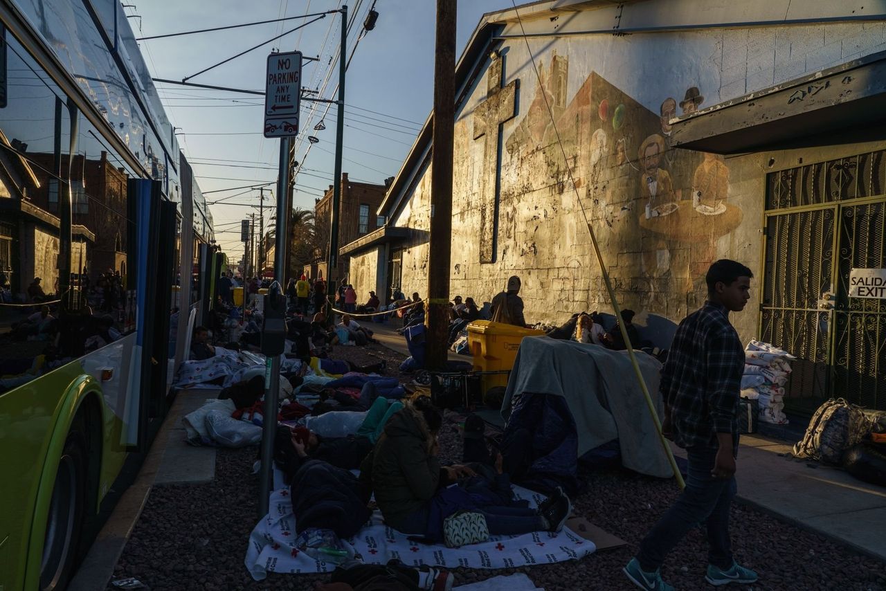 本月早些時候,德克薩斯州埃爾帕索市的移民,其中一些人不得不睡在街上。圖片來源:保羅·拉特傑/彭博新聞德克薩斯州埃爾帕索市周邊的邊境地區在12月成為越境活動的中心,數千名主要來自尼加拉瓜和古巴的移民湧入該市,使當地收容所不堪重負,甚至有些人被迫露宿街頭。