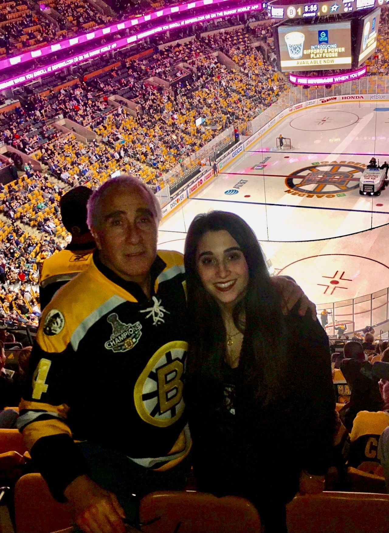 勞倫·阿澤維多與父親託尼·阿澤維多在波士頓棕熊隊比賽現場。照片:勞倫·阿澤維多翻譯:馬特·格熱爾奇克已離開冰場,漢普斯·林霍爾姆正在比賽。阿澤維多女士立刻明白了情況。“我連眼睛都沒眨一下,“她説。